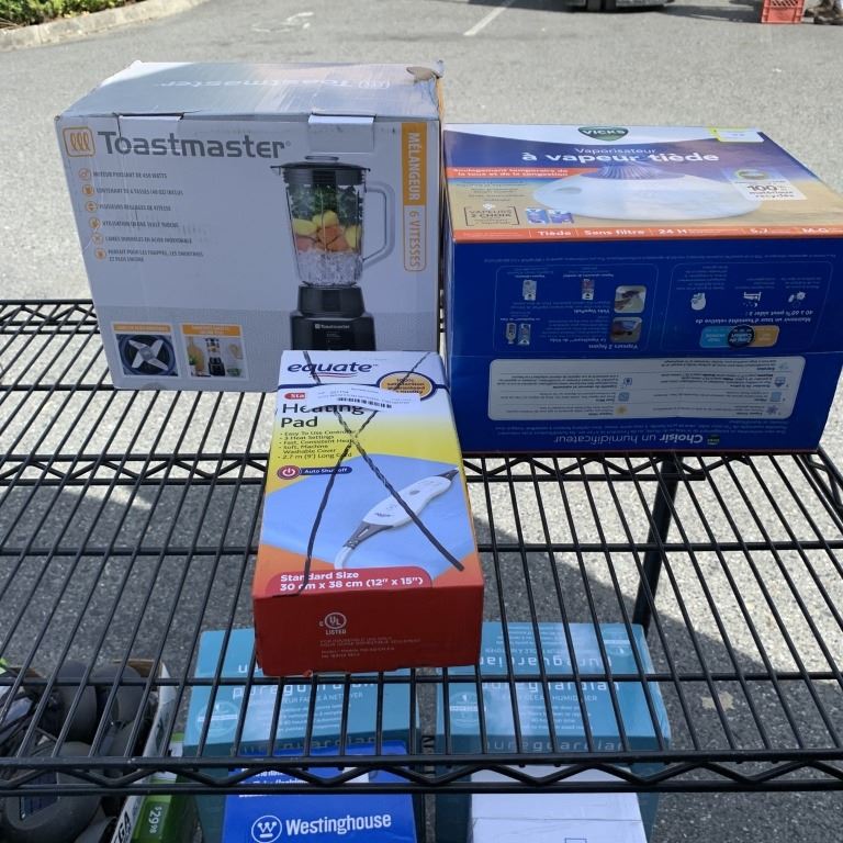 VICKS WARM STEAM VAPORIZER, TOASTMASTER BLENDER AND EQUATE HEATING PAD STANDARD SIZE
