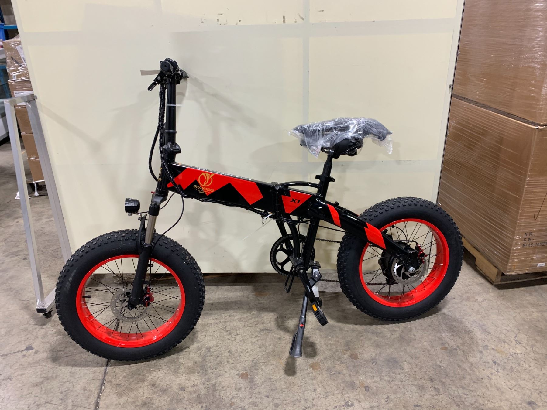 VICTORIAN EBIKE X1 PLUS RED/BLACK FOLDING FRONT SUSPENSION ELECTRIC BIKE WITH FULL DISC BRAKES WITH BATTERY-48V 13AMP, 1000 WATT MOTOR, MAX SPEED-32KM/H, TIRE: 26 X 4, RANGE: UP TO 55KM ( *IN BOX* )