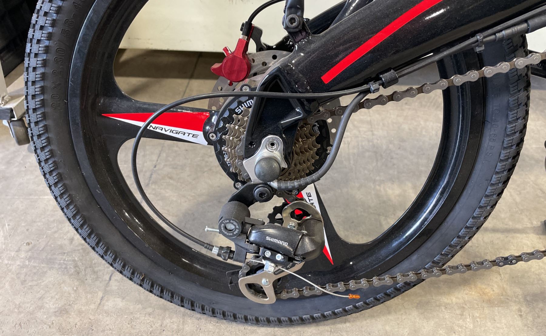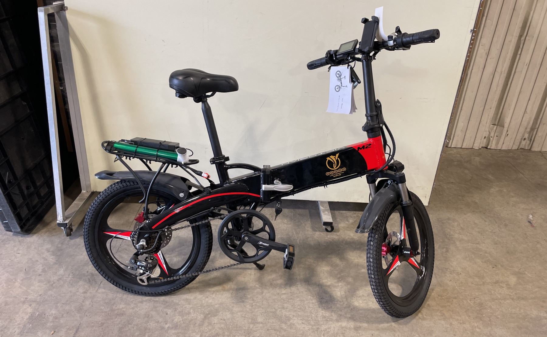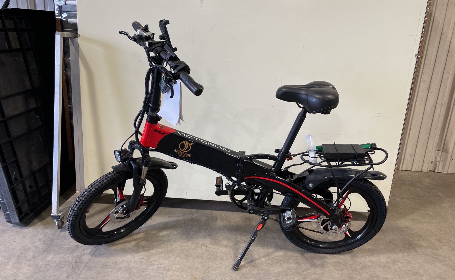 VICTORIAN M2 A BLACK / RED SHIMANO 7 SPEED ELECTRIC FOLDABLE E-BIKE WITH CHARGER - 55 KM RANGE, HYDRAULIC DISC BRAKES, LCD WATER PROOF DISPLAY, 45 LBS WEIGHT, 4-6 HRS PER CHARGE, MOTOR: 500W MOTOR, 32 KMH MAX SPEED BATTERY: SAMSUNG 48V 10.4AH TIRES: 20" X 1.95" *IN BOX*