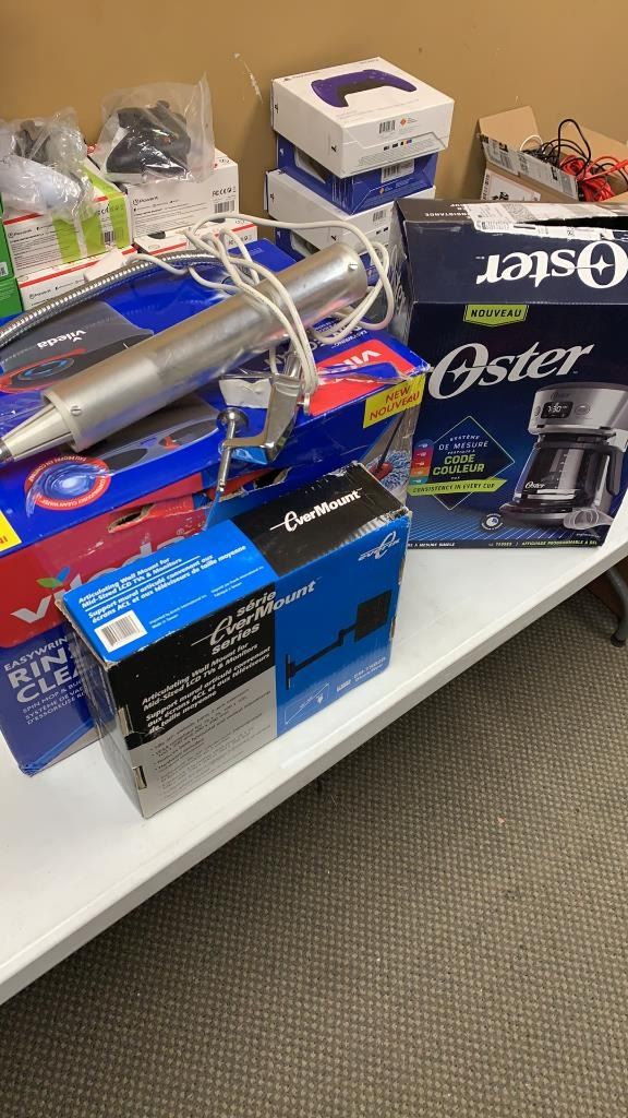 VILEDA MOP BUCKET WITH OSTER COFFEE MAKER, CLAMP LIGHT AND TVMOUNT