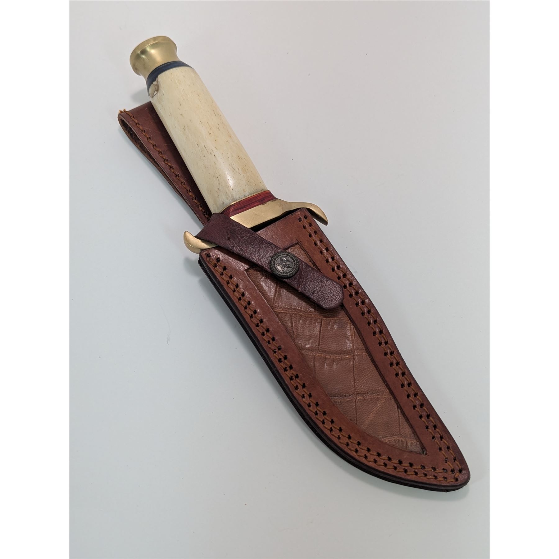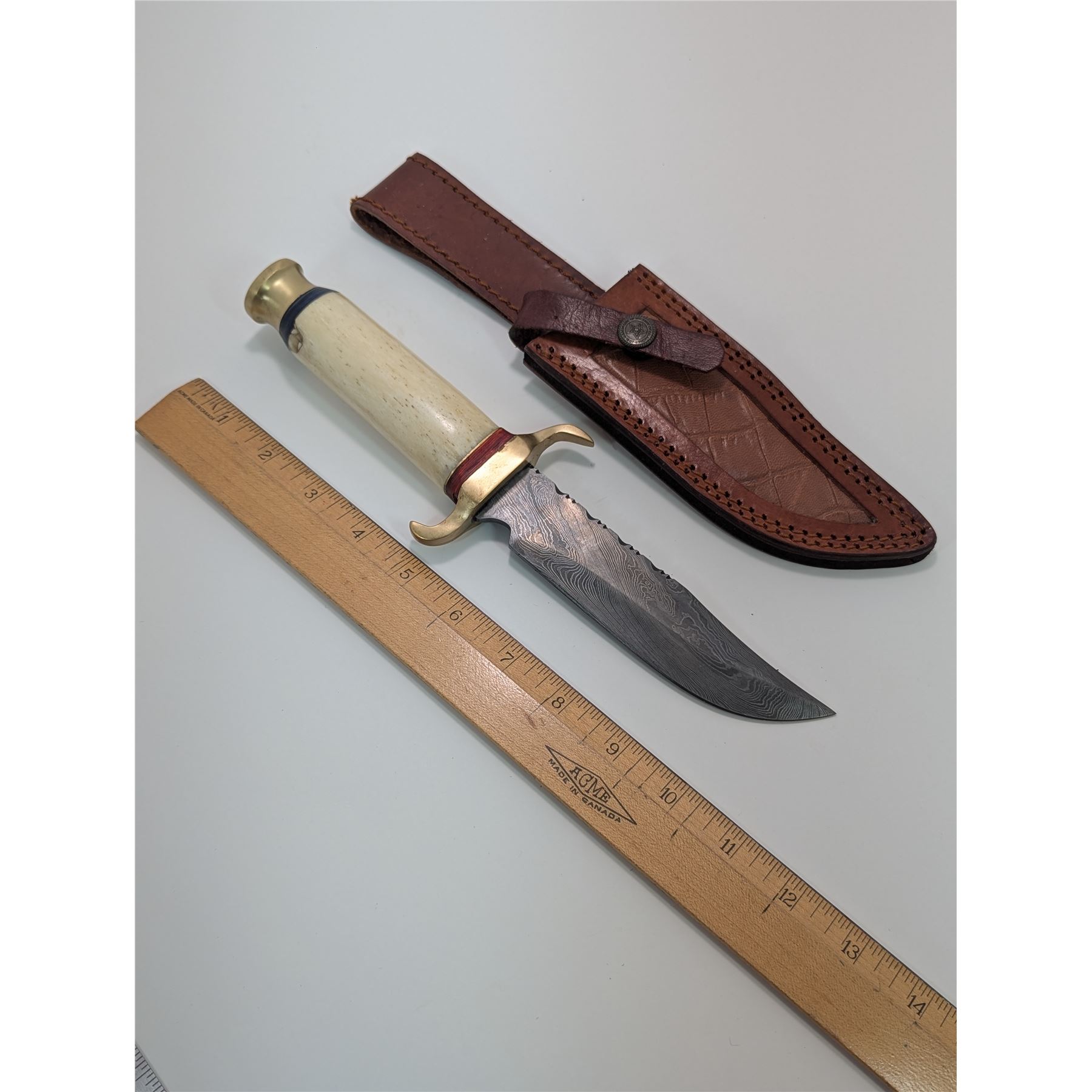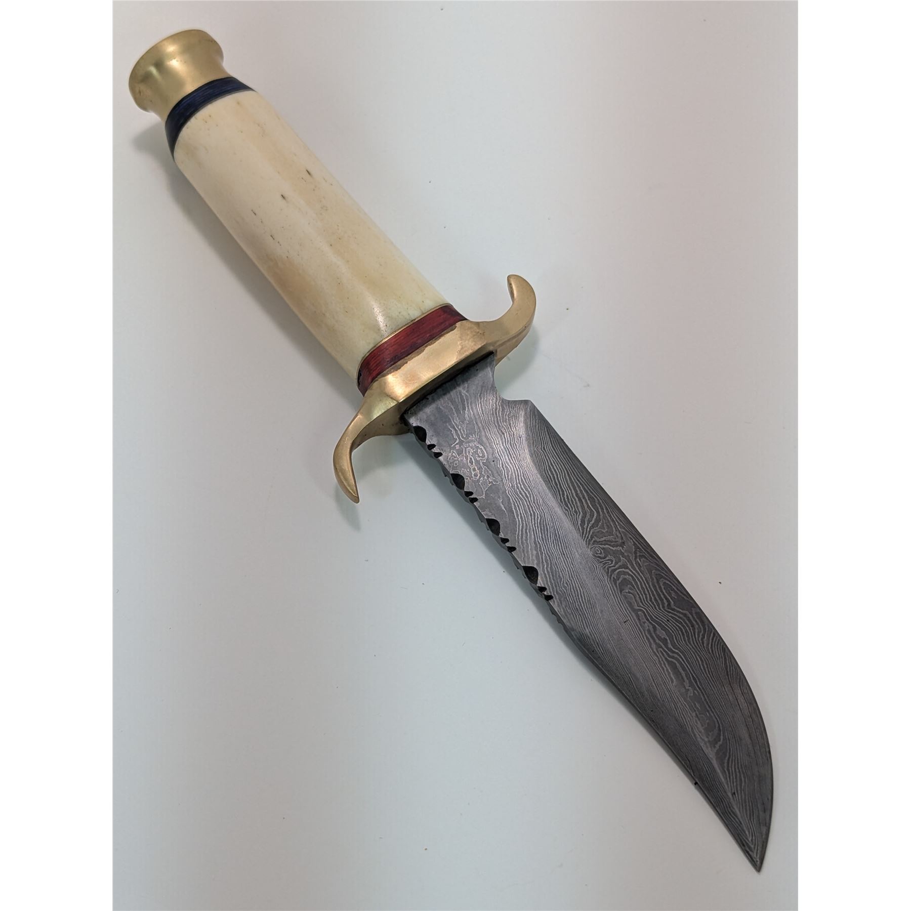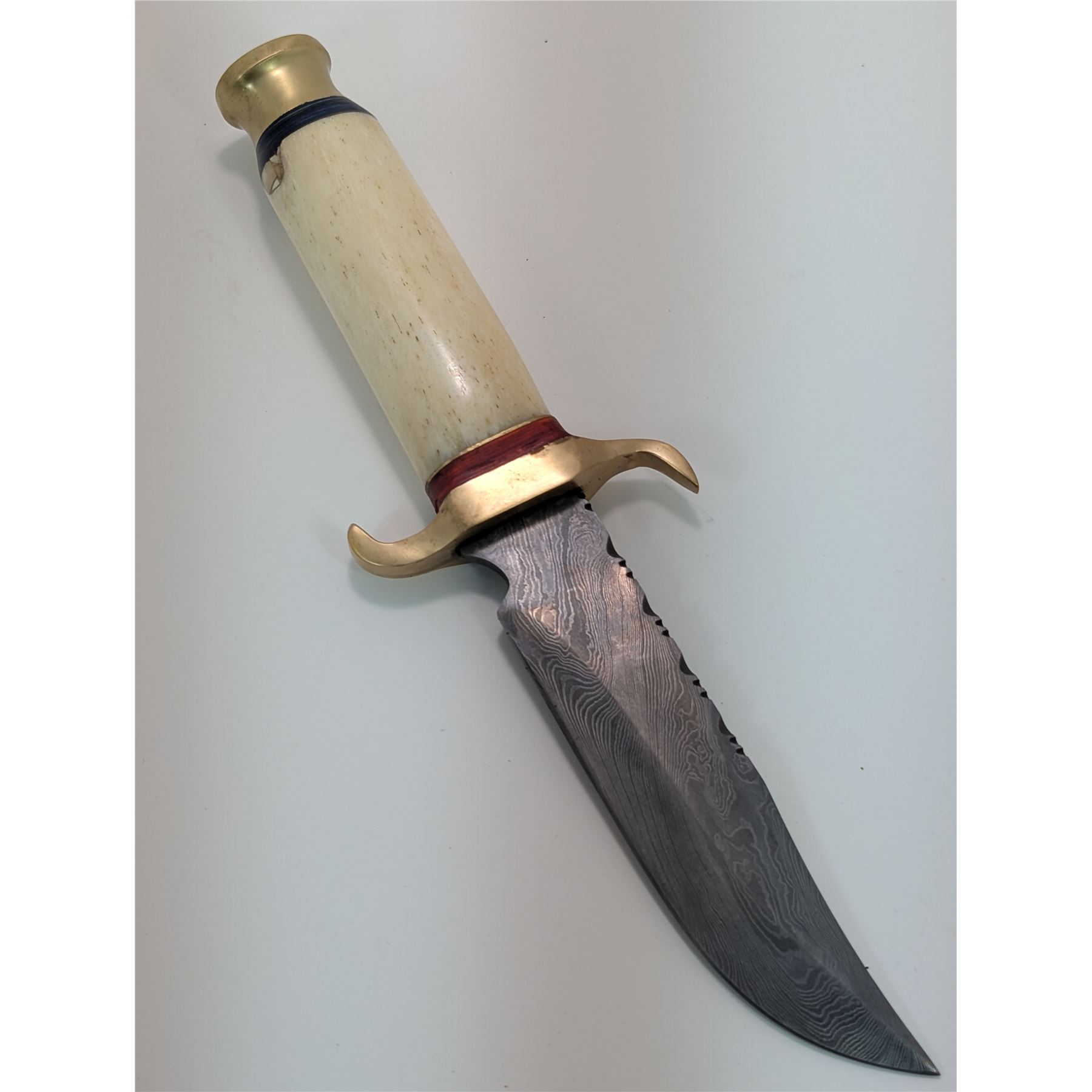 VINTAGE 1907 CALIFORNIA BOWIE KNIFE Damascus steel blade. Intricate State of California button badge.