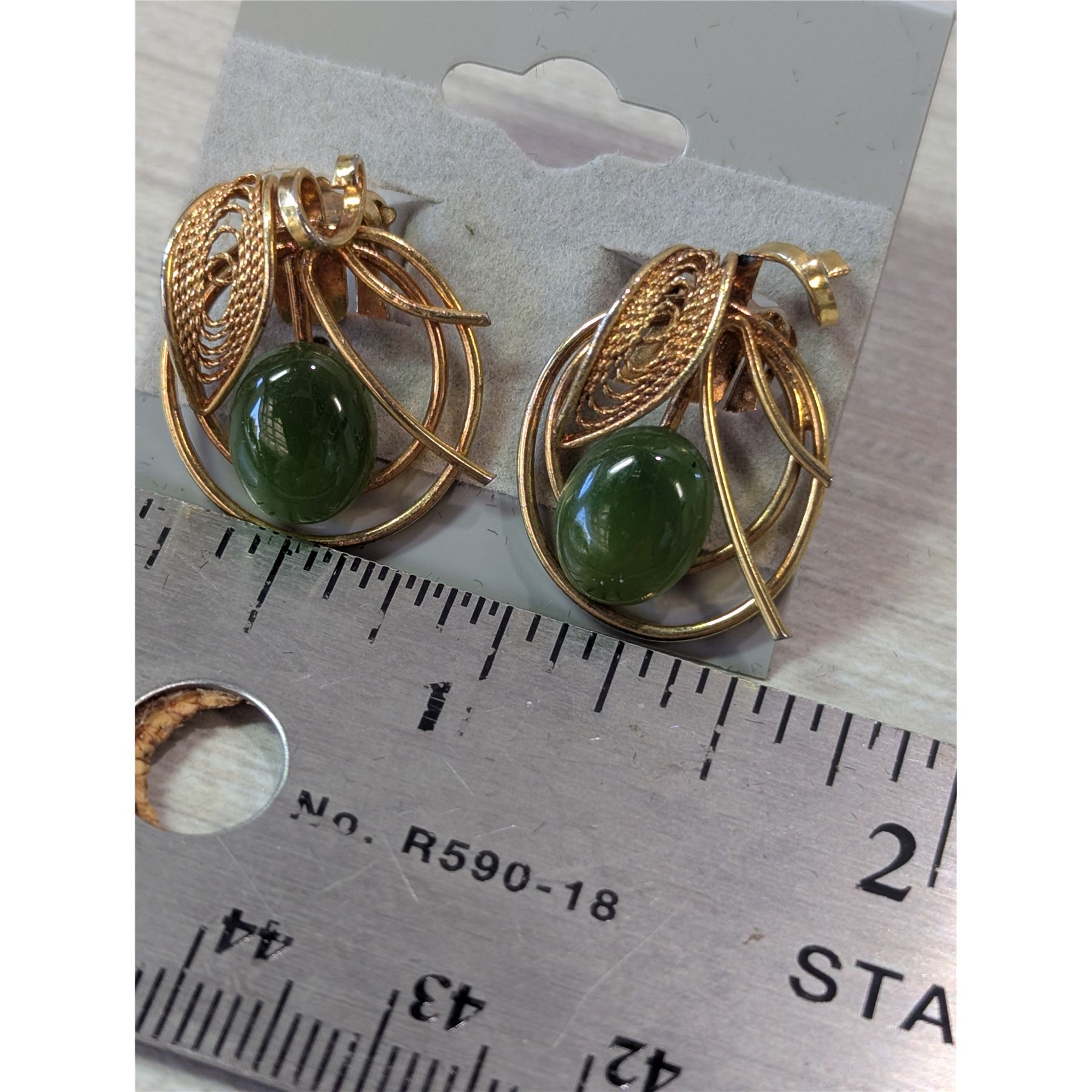 VINTAGE 1960'S JADE WIREWORK Clip-on Earrings