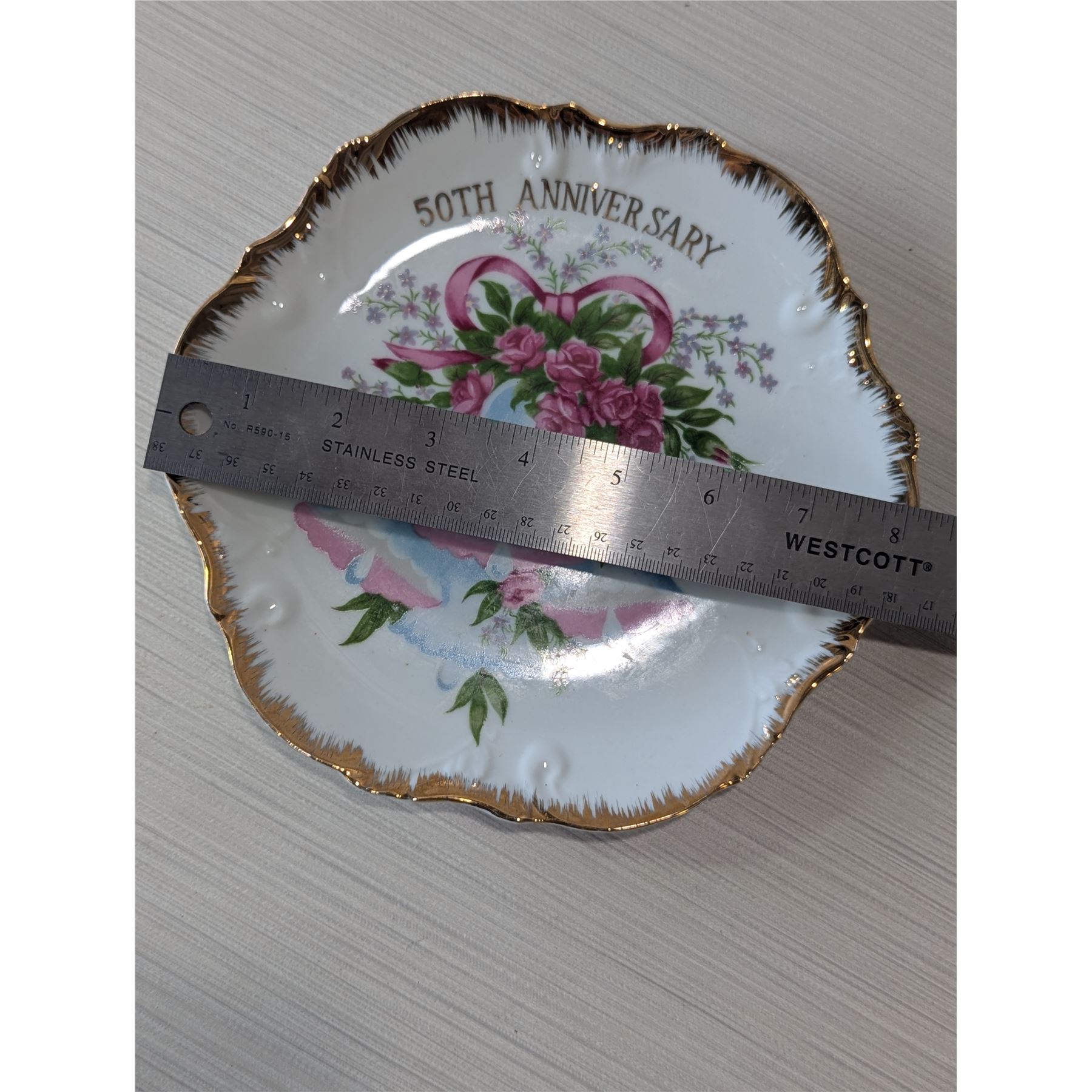 VINTAGE 50th Wedding Anniversary 8" Plate. Sold by Enterprise Sales & Distributors, TORONTO CANADA.
