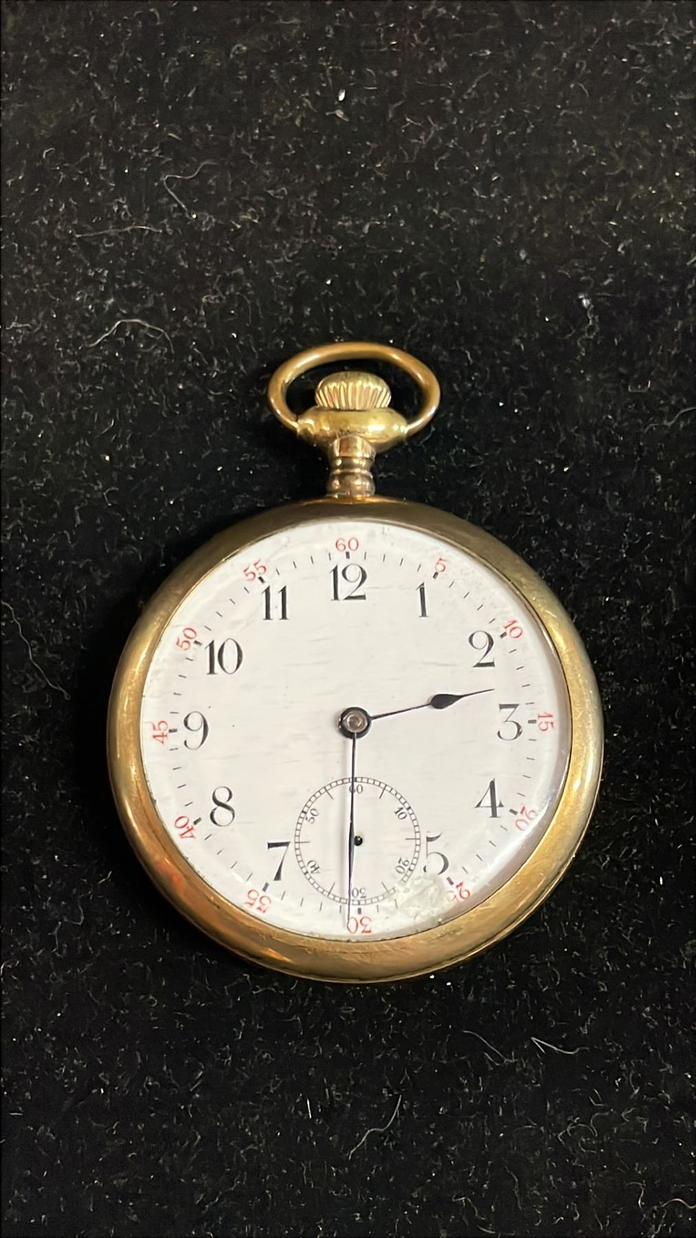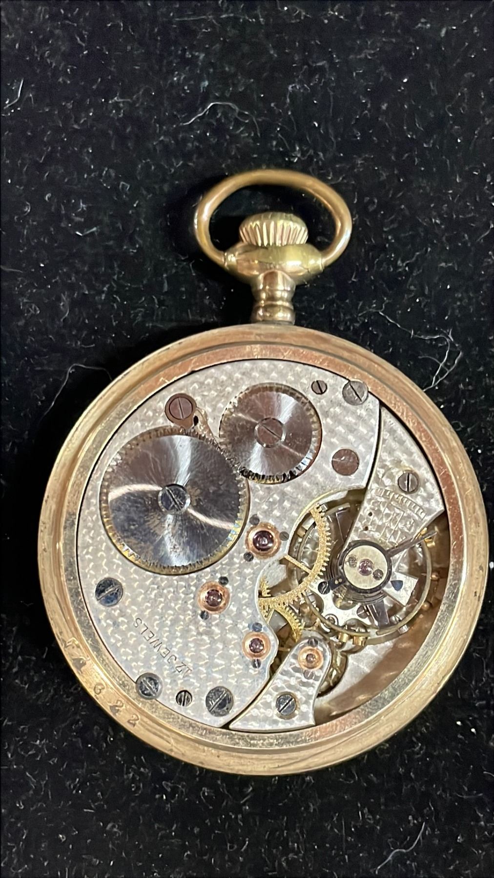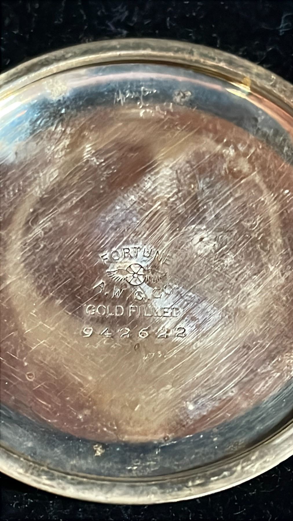 VINTAGE A.W.C. CO FORTUNE GOLD FILLED POCKET WATCH 942622 17 JEWELS (DOES NOT TICK, TIMER WORKS, NO TIMER HAND)