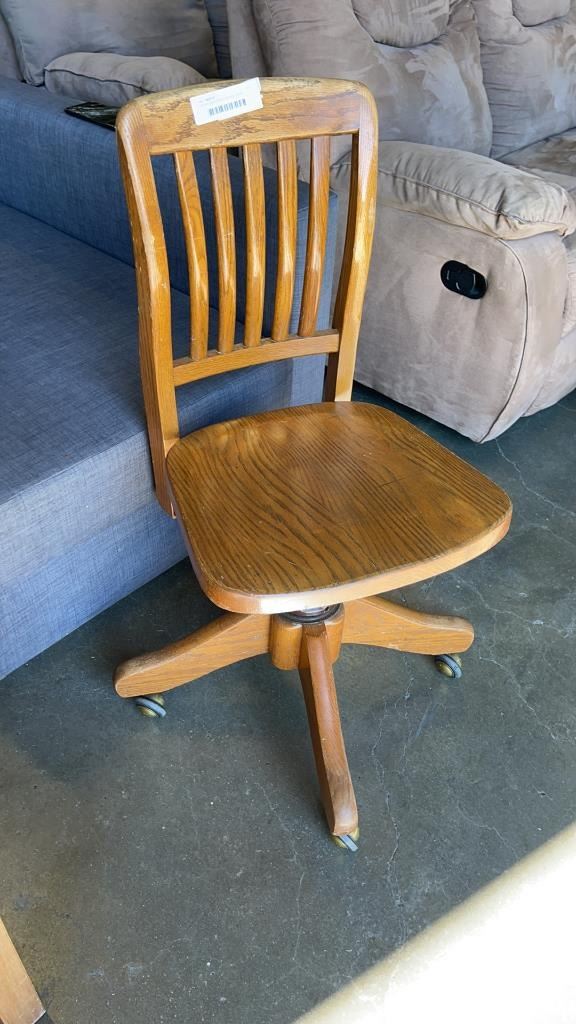 VINTAGE ADJUSTABLE WOOD OFFICE CHAIR