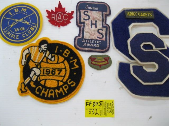 VINTAGE BADGES/PATCHES - SUMMERLAND HIGH SCHOOL LETTERMAN, IBM, BOY SCOUTS, ETC.