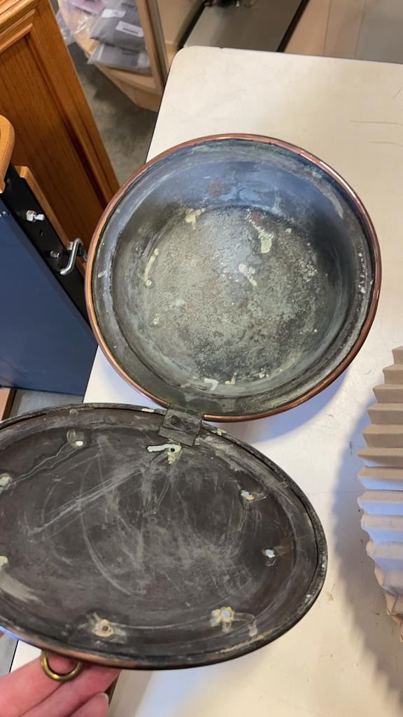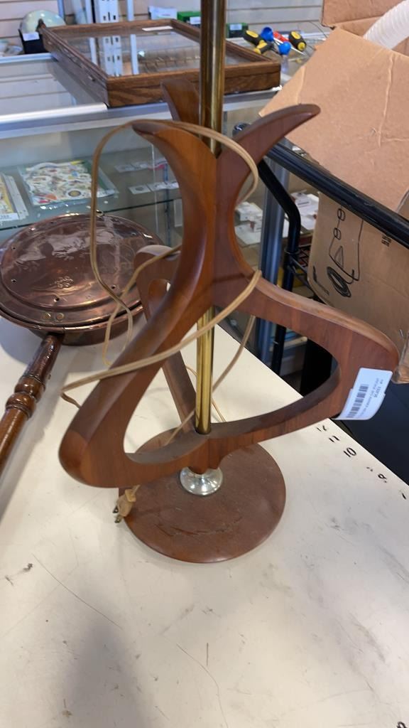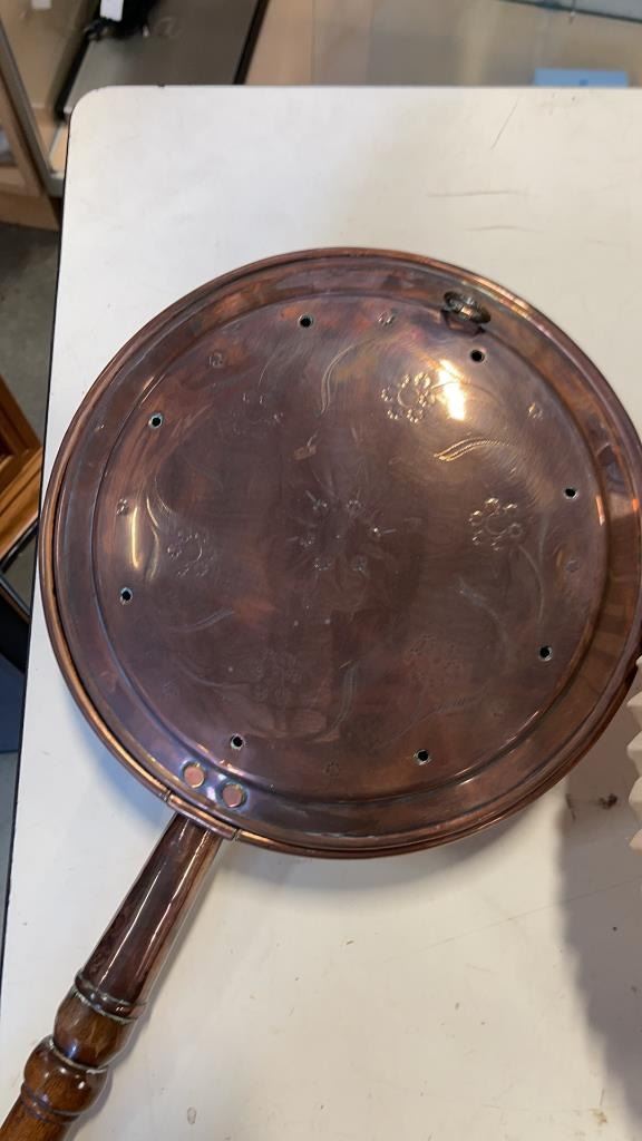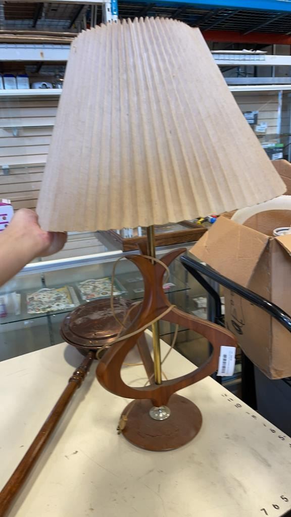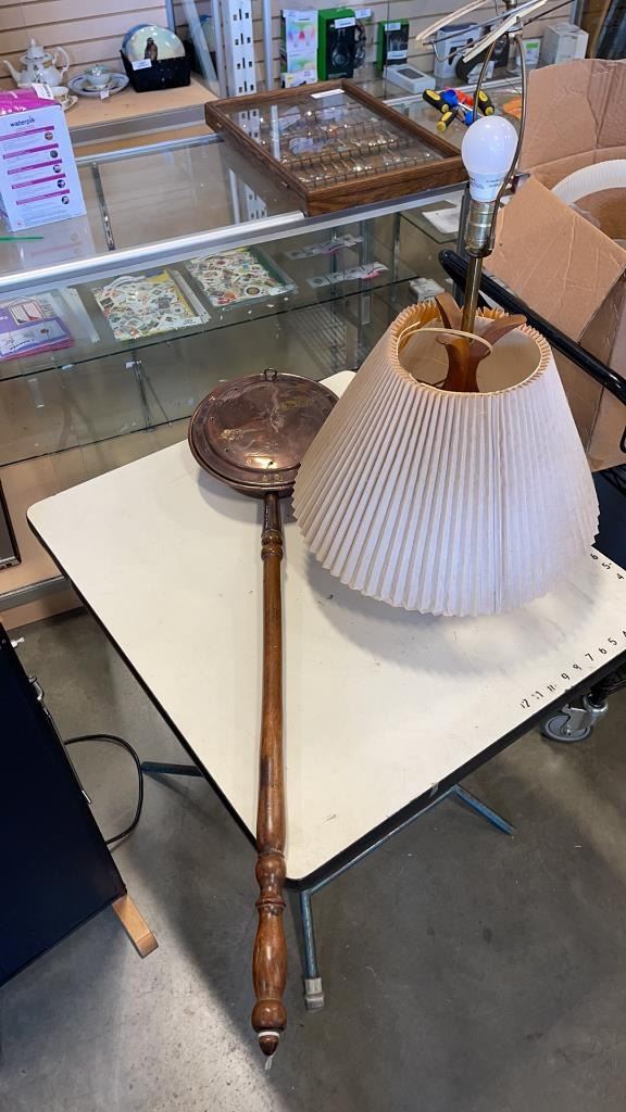 VINTAGE BED WARMER AND WOOD BASE LAMP