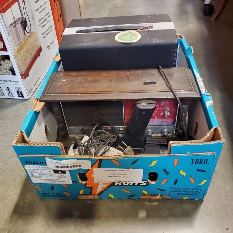 VINTAGE BELL AND HOWELL FILMOSONIC AND TABLE TOP RADIO ALARM CLOCK