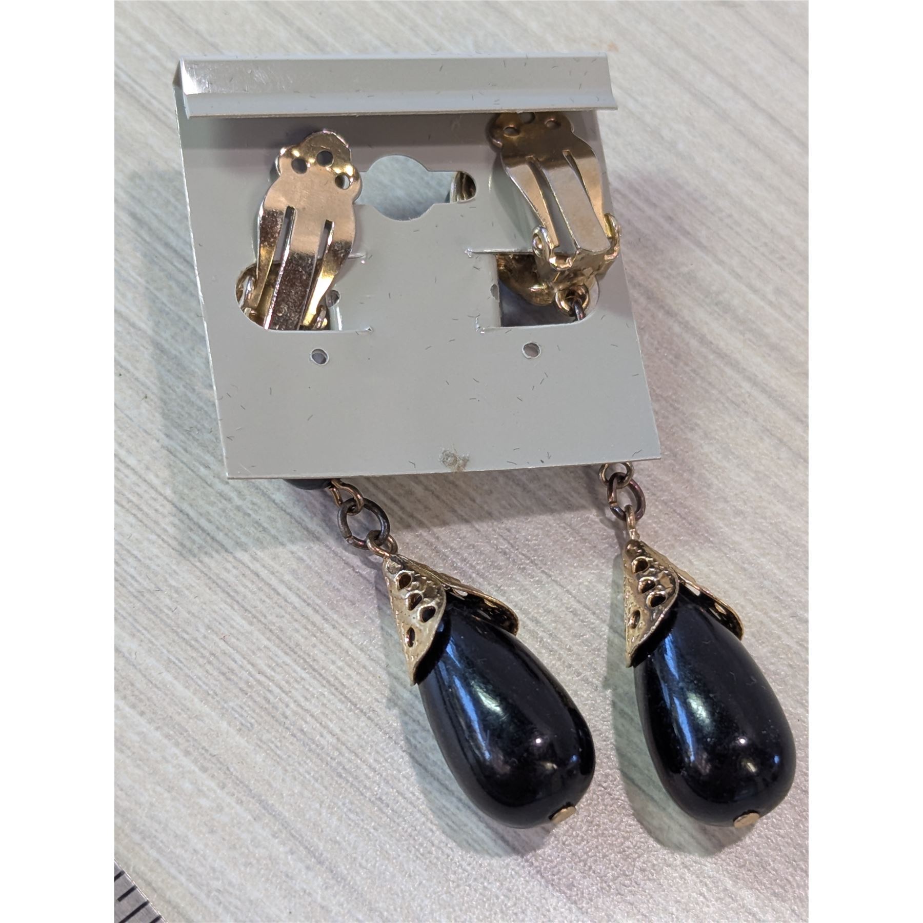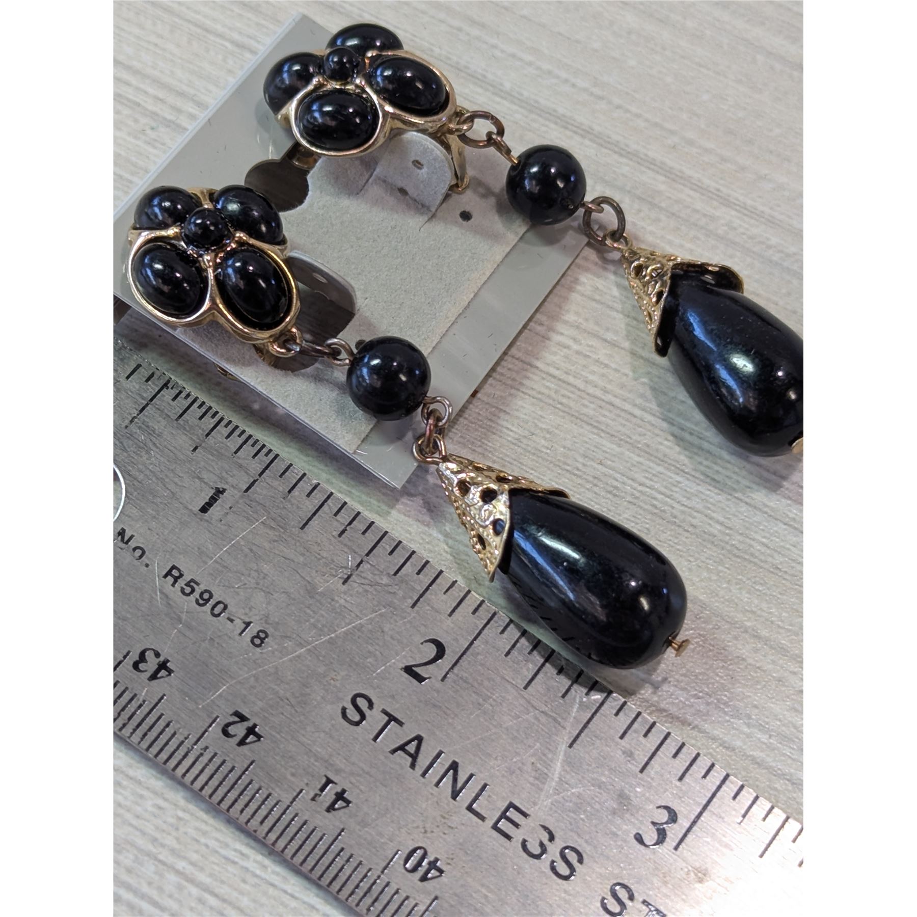 VINTAGE BLACK AGATE GOLD COLOURED 2.5 " CLIP-ON EARRINGS