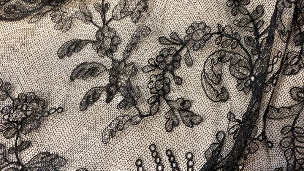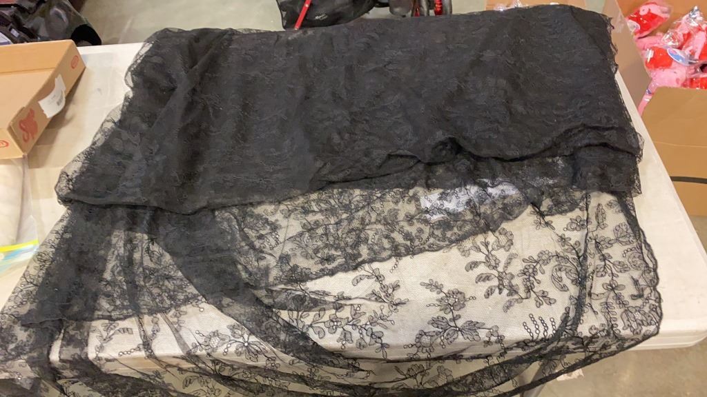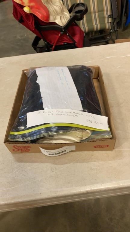 VINTAGE BLACK LACE MANTILLA C.1920 SILK LADIES DRESS SIZE MEDIUM