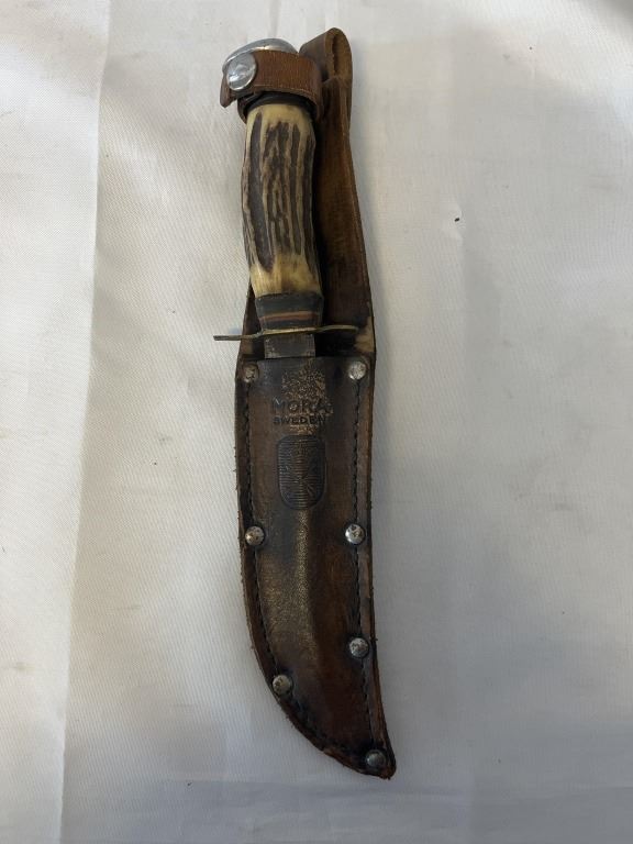 VINTAGE BONE HANDLED KNIFE WITH SHEATH MARKED MORA SWEDEN