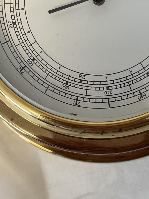 VINTAGE BRASS BAROMETER, MARKED GERMANY