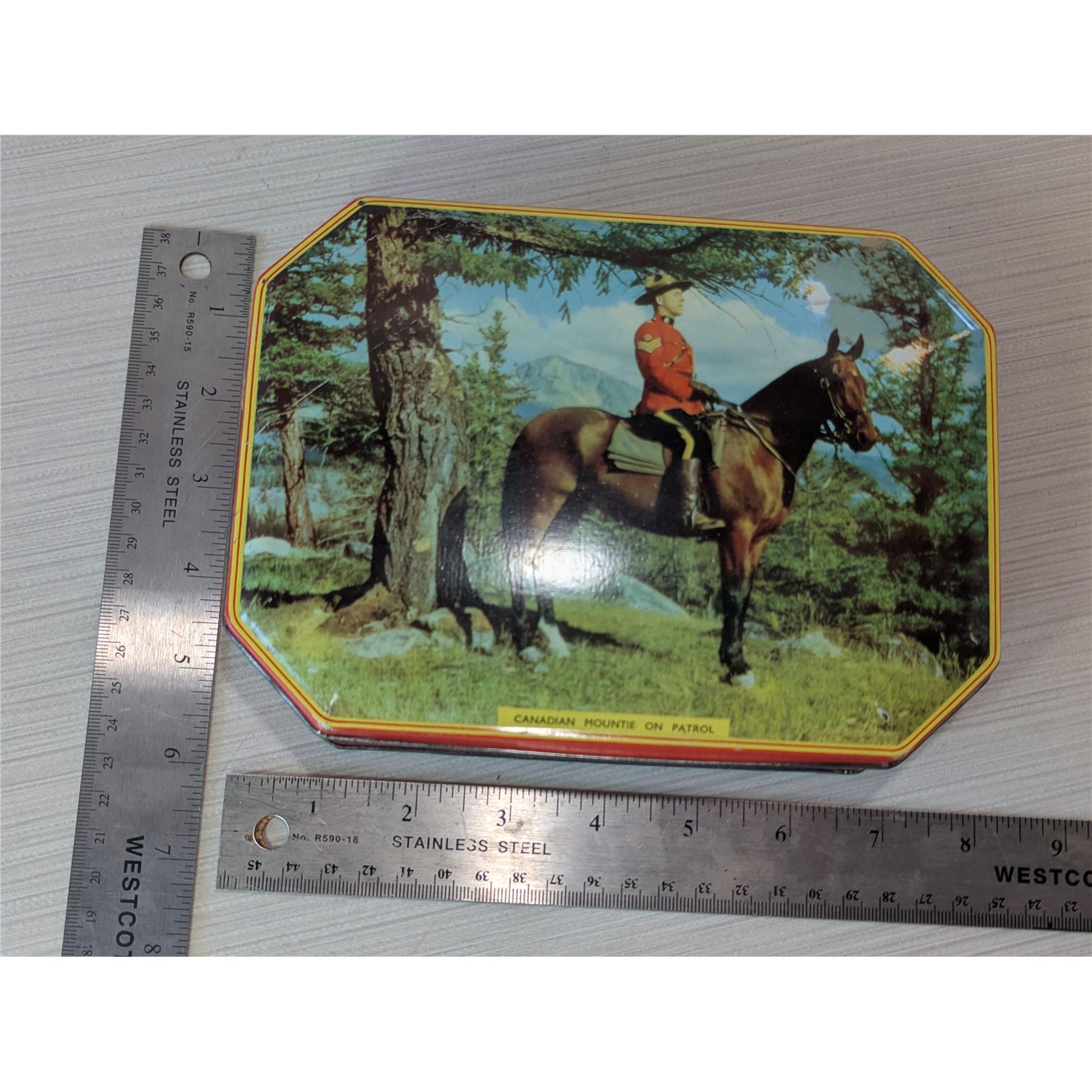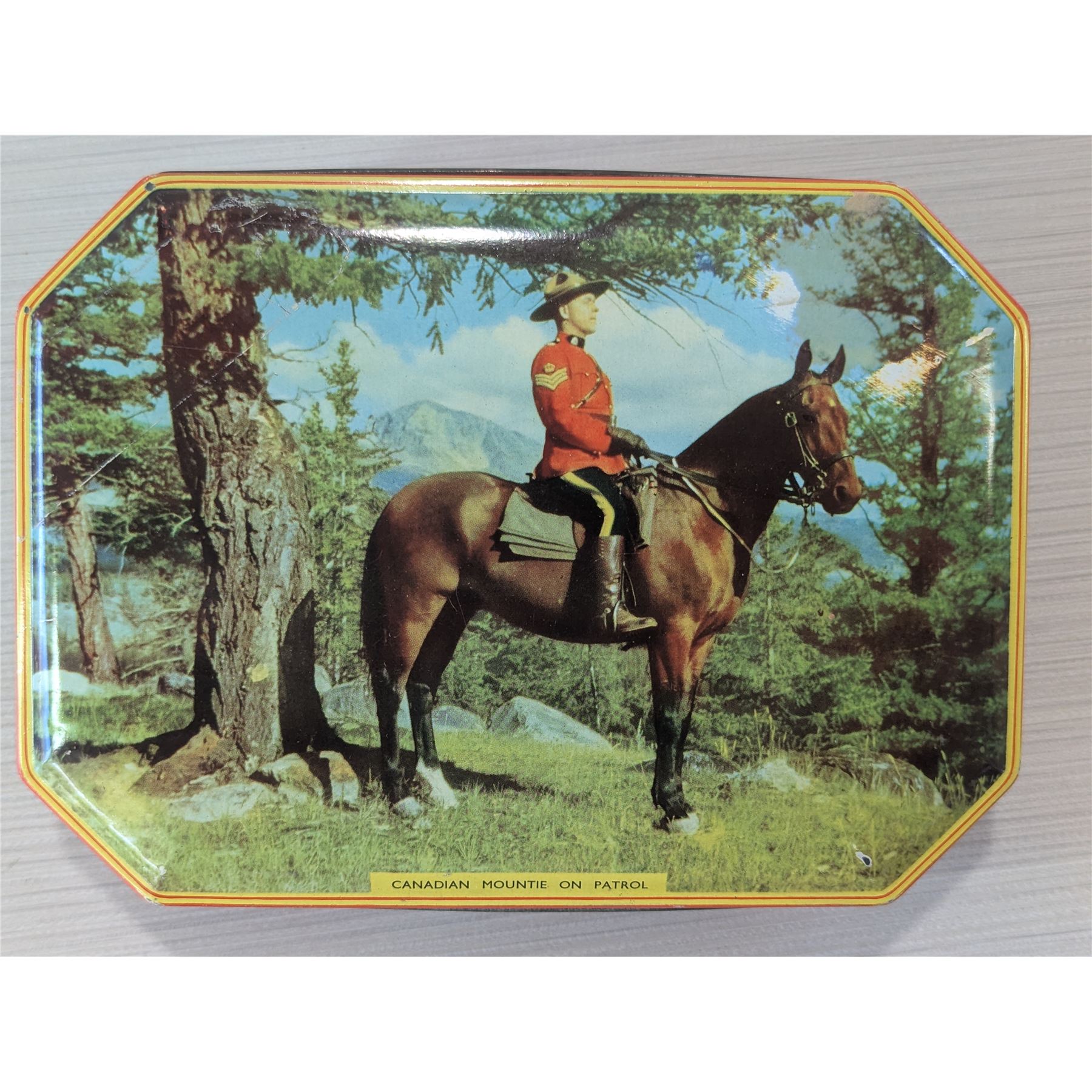 VINTAGE CANADIAN MOUNTIE ON PATROL TIN