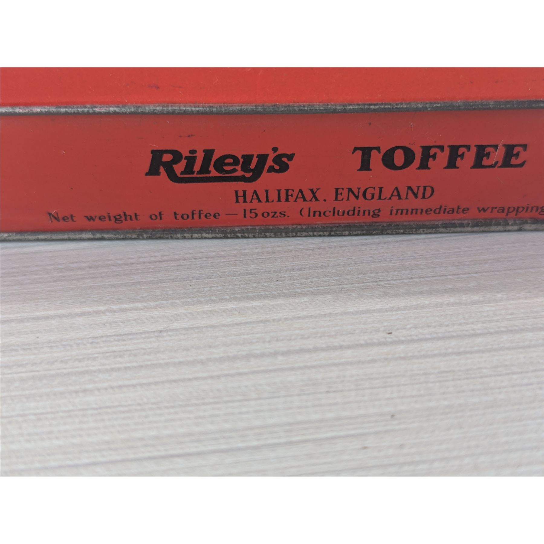 VINTAGE CANADIAN MOUNTIE ON PATROL TIN 7.75" x 5.75" x 1.75" RILEY'S TOFFEE HALIFAX ENGLAND