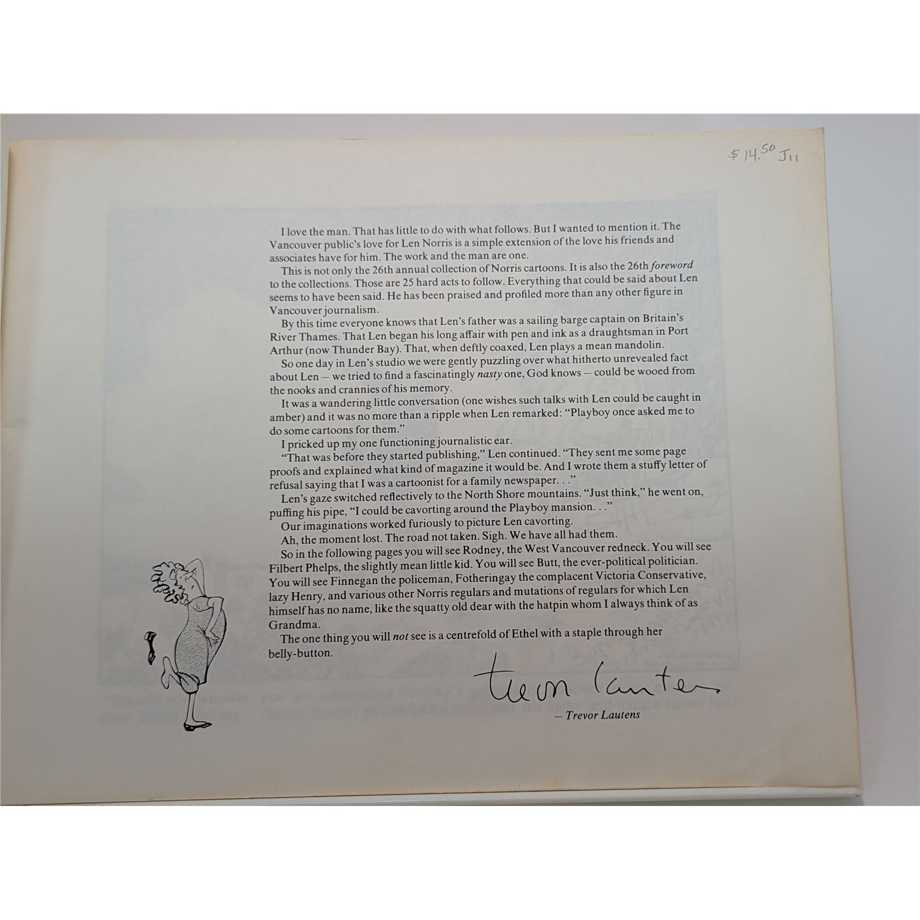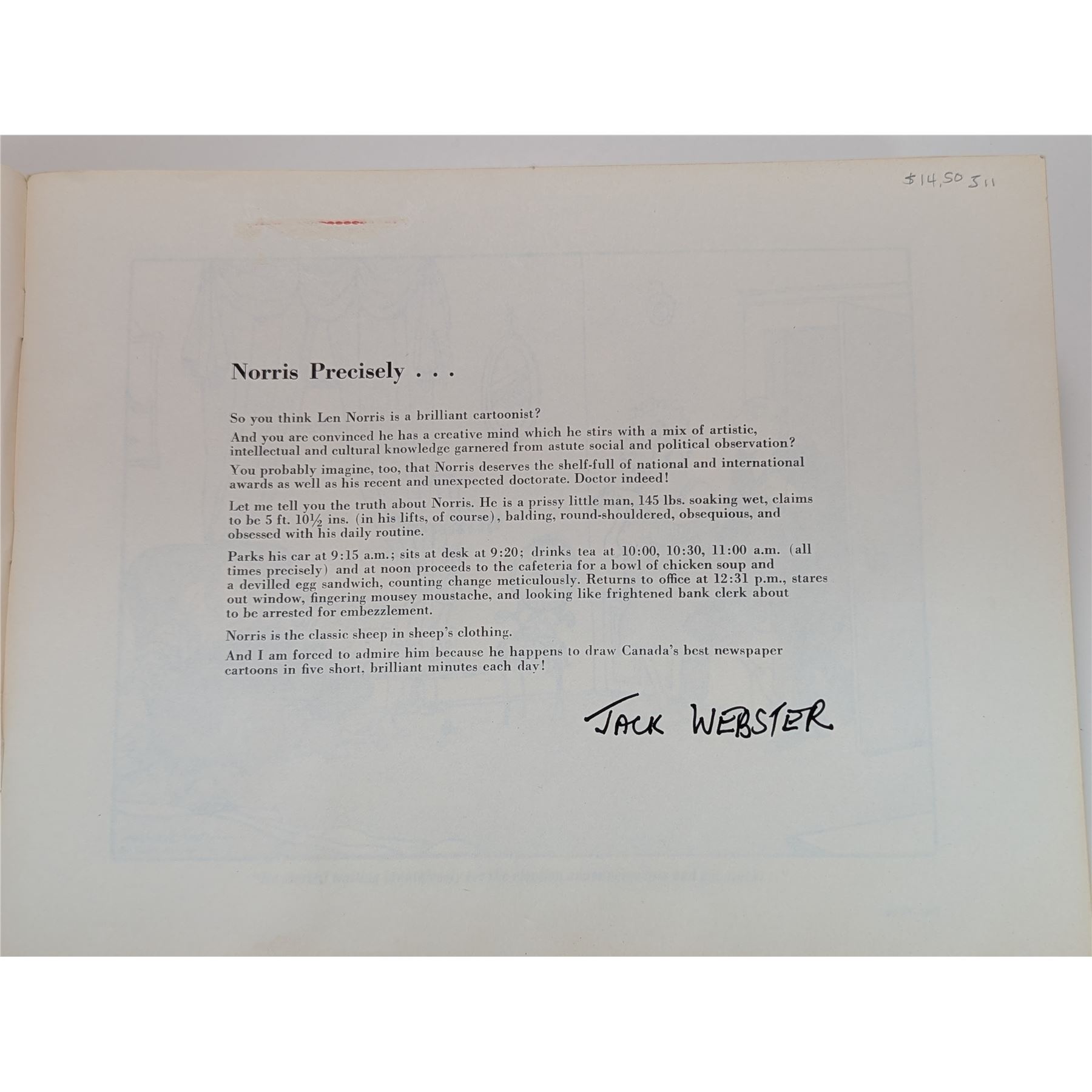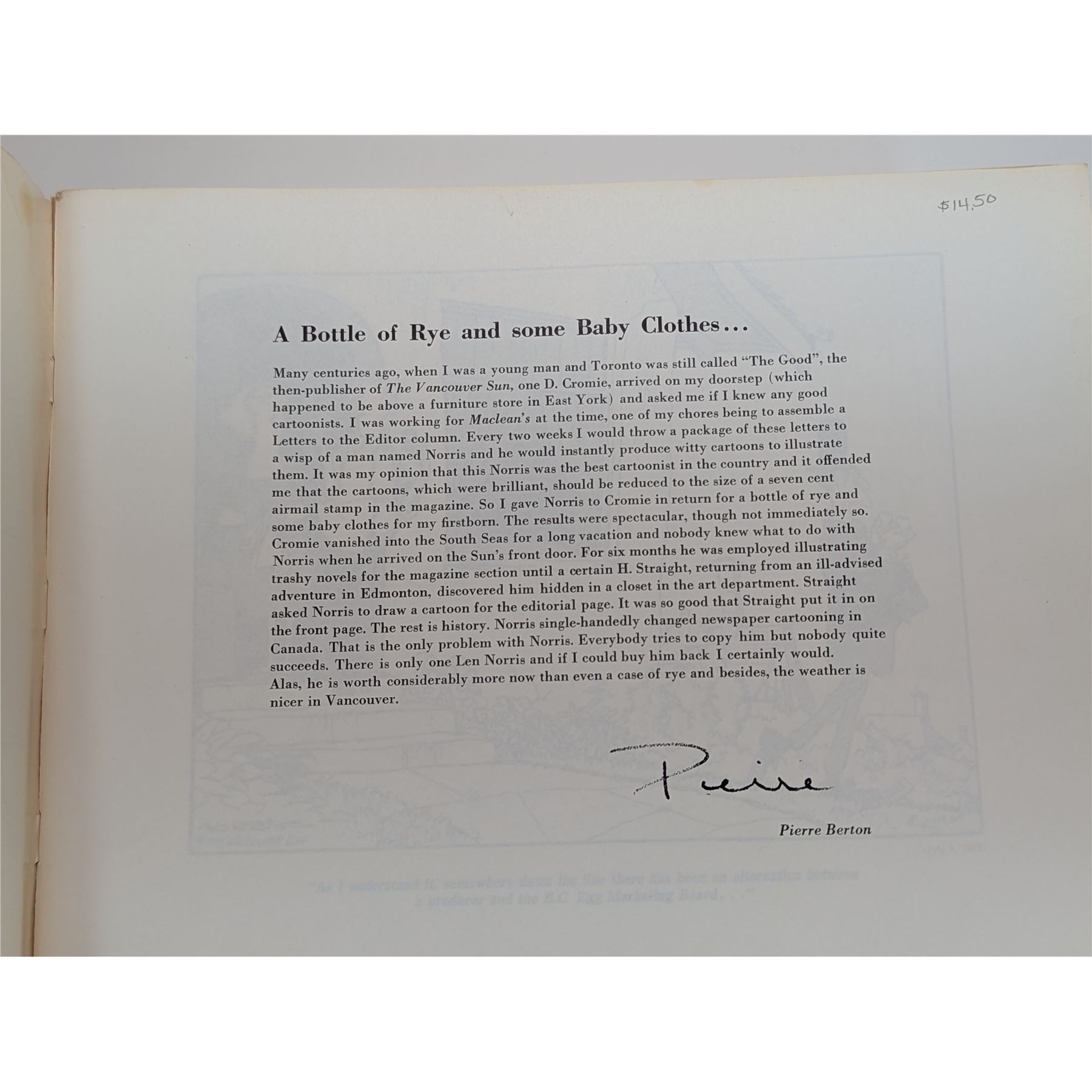 Vintage collection of 101 cartoons by Len Norris, an editorial cartoonist for the Canadian newspaper, the Vancouver Sun, from 1950 to 1988.