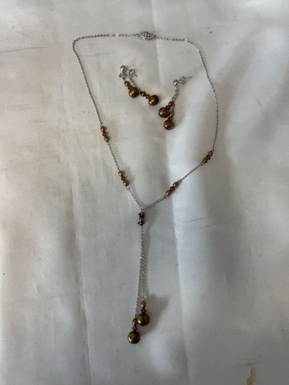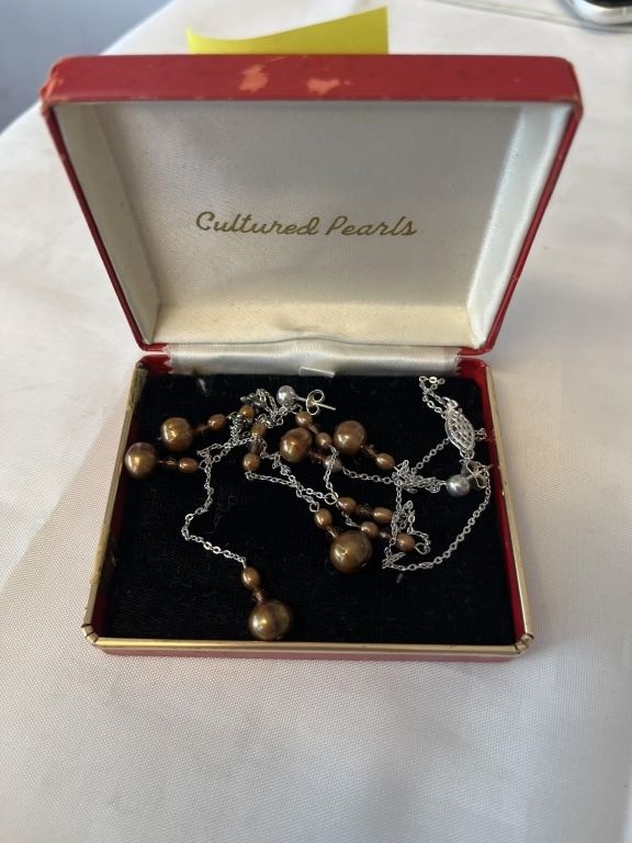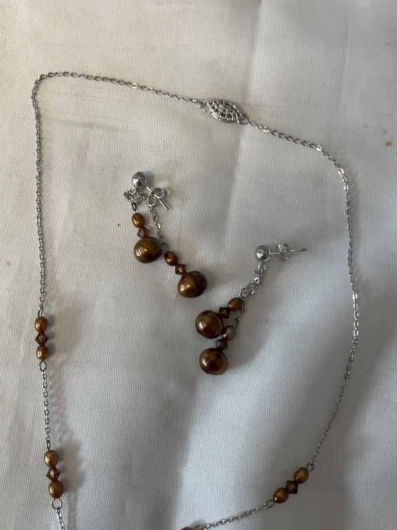 VINTAGE CULTURED FRESHWATER PEARL NECKLACE WITH MATCHING EARRINGS