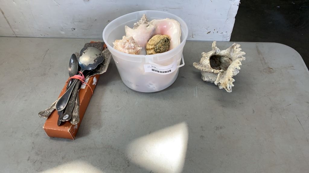 VINTAGE CUTLERY SERVING UTENILS AND SHELL COLLECTION