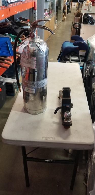 VINTAGE FIRE EXTINGUISHER AND ADJUSTABLE HITCH