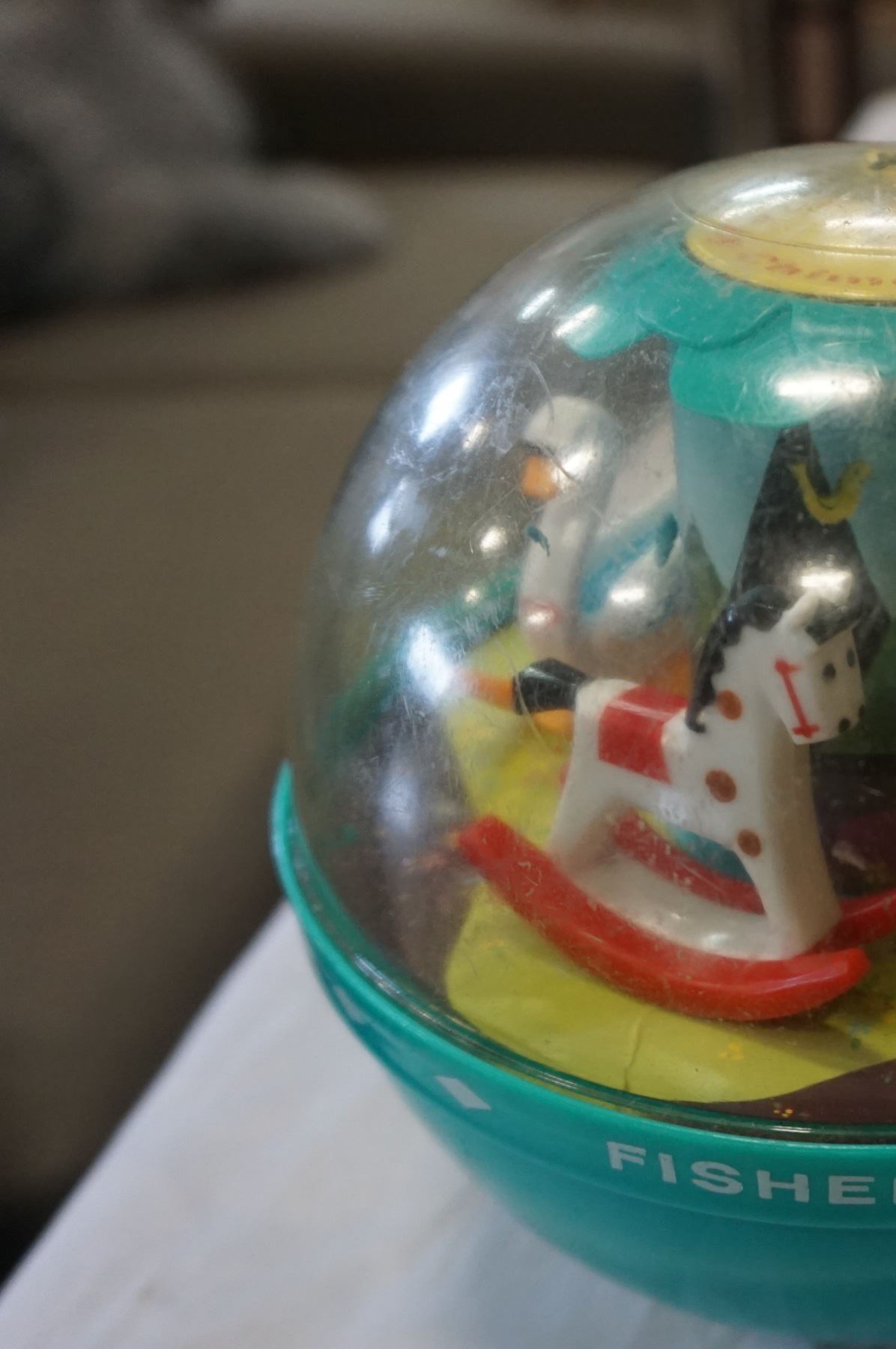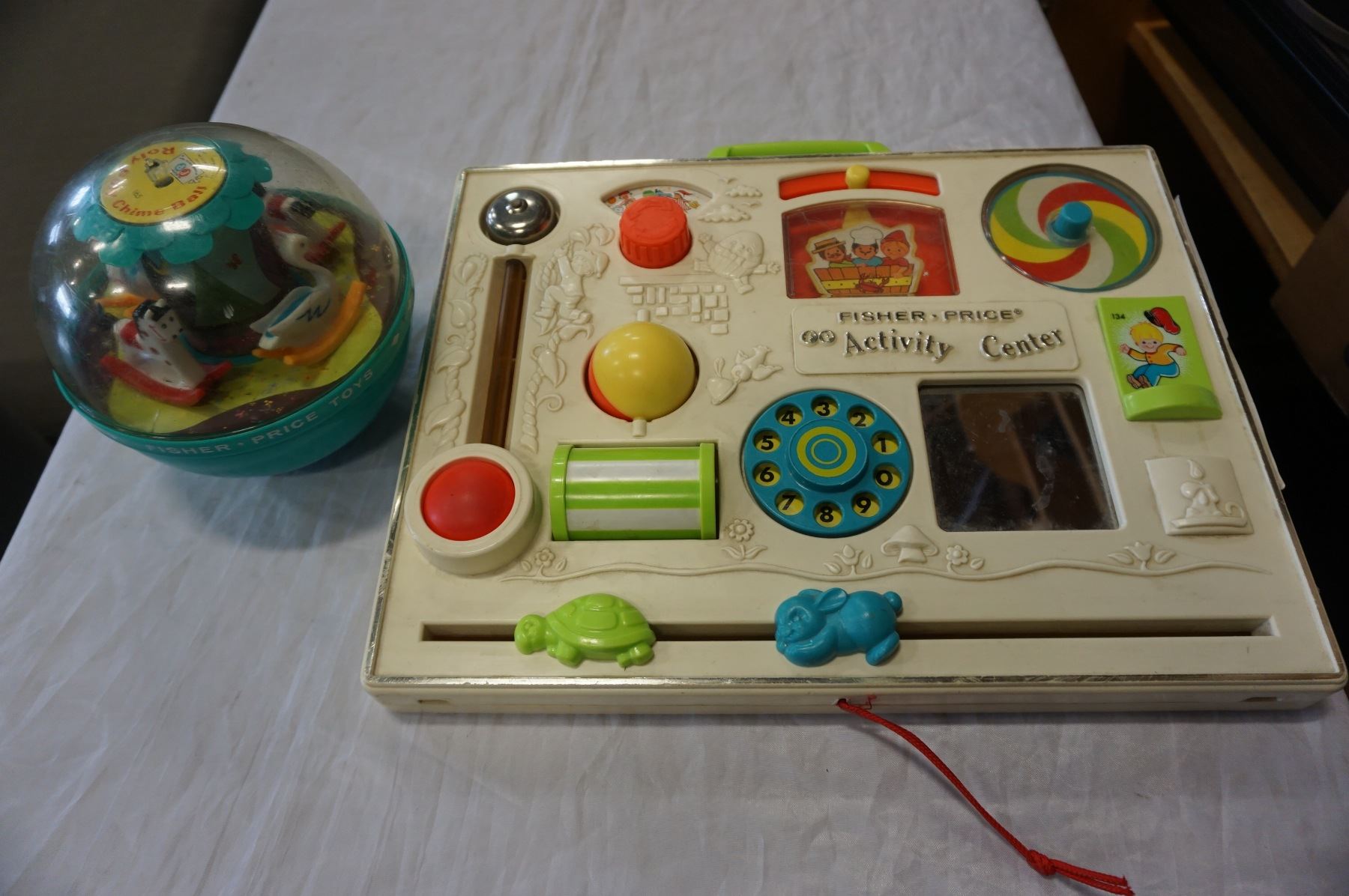 VINTAGE FISHER PRICE ROLY POLY CHIME BALL FROM 1966 AND ACTIVITY CENTER