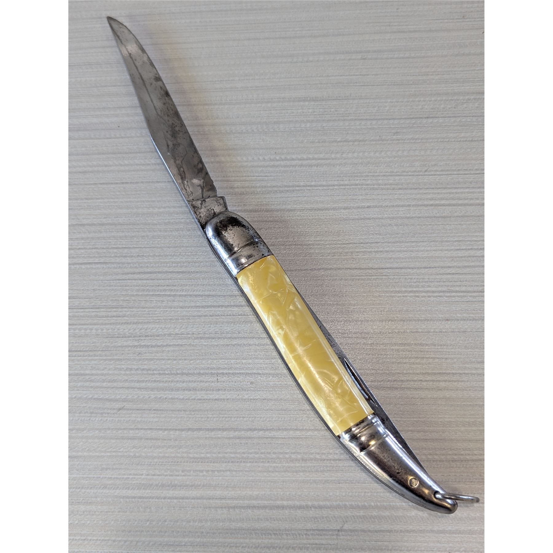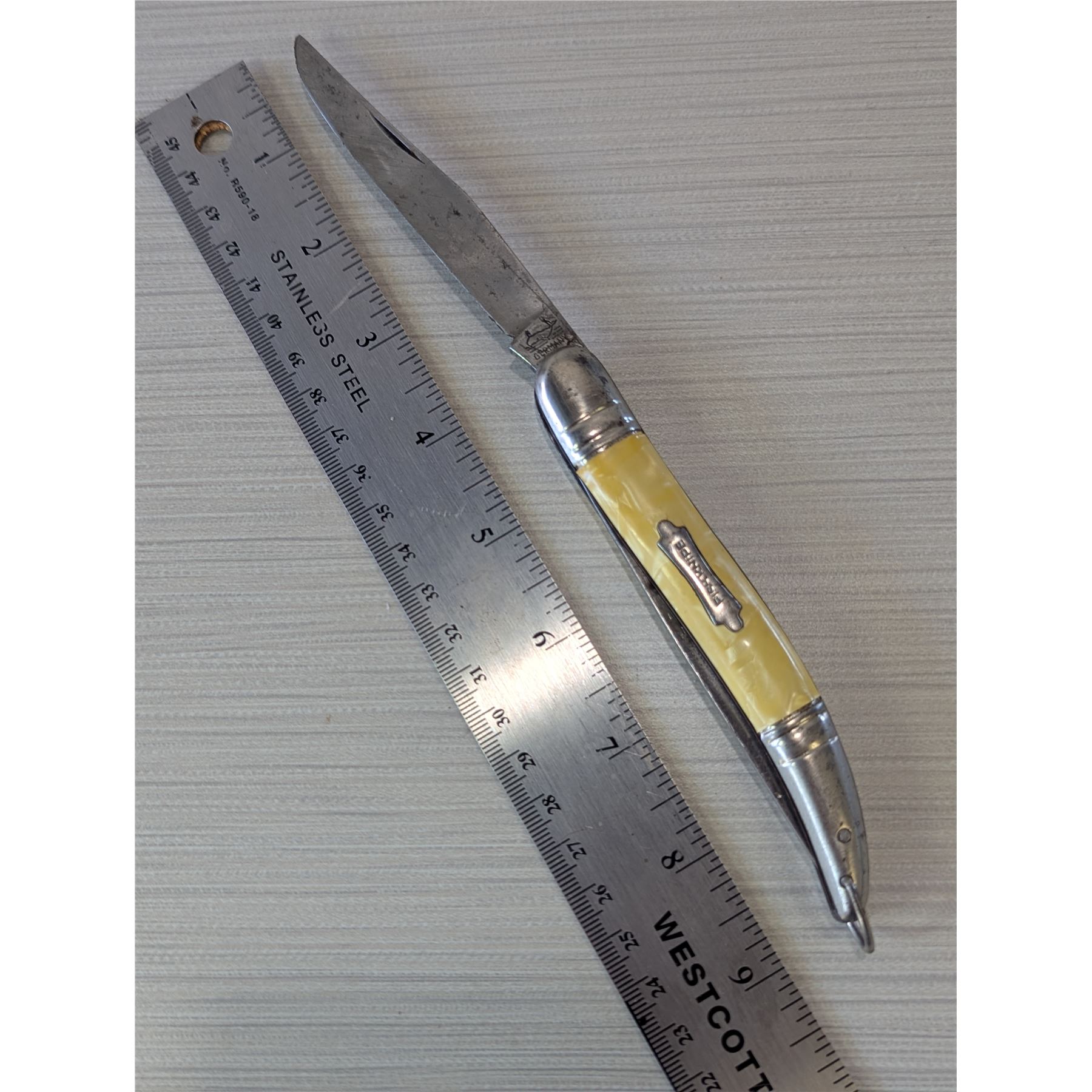VINTAGE FISHING Knife Made in Germany 9" overall, with 4" knife & scaling blade. Pearl handle