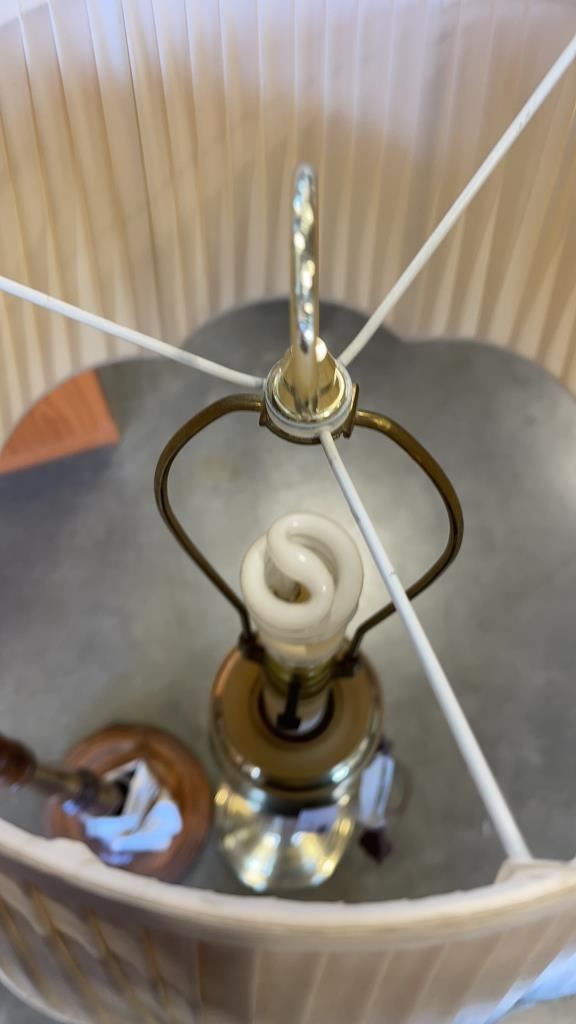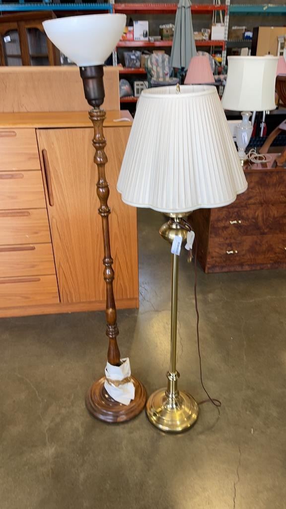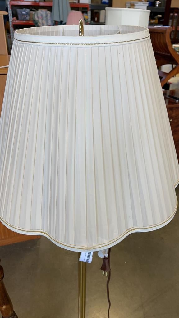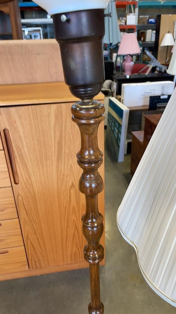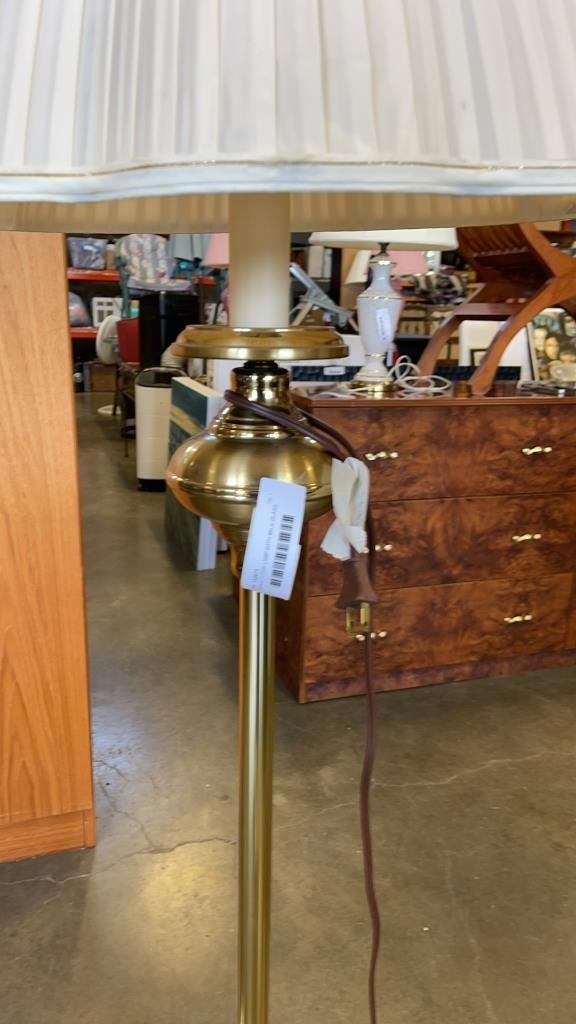 VINTAGE FLOOR LAMP WITH MILK GLASS SHADE AND BRASS FLOOR LAMP