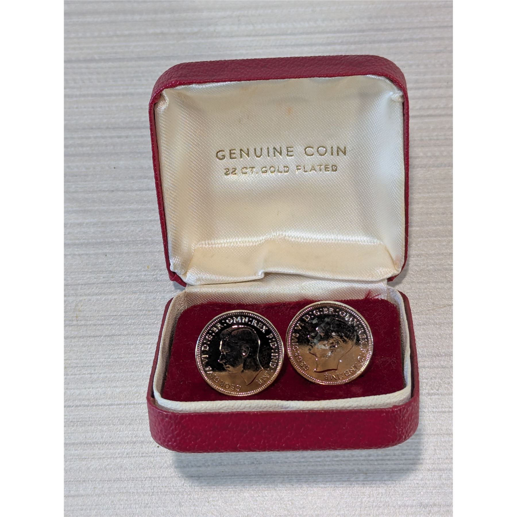VINTAGE GENUINE COIN CUFFLINKS 1943 Farting with King George Image