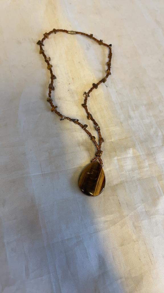 VINTAGE GENUINE TIGERS EYE STONE PENDANT NECKLACE