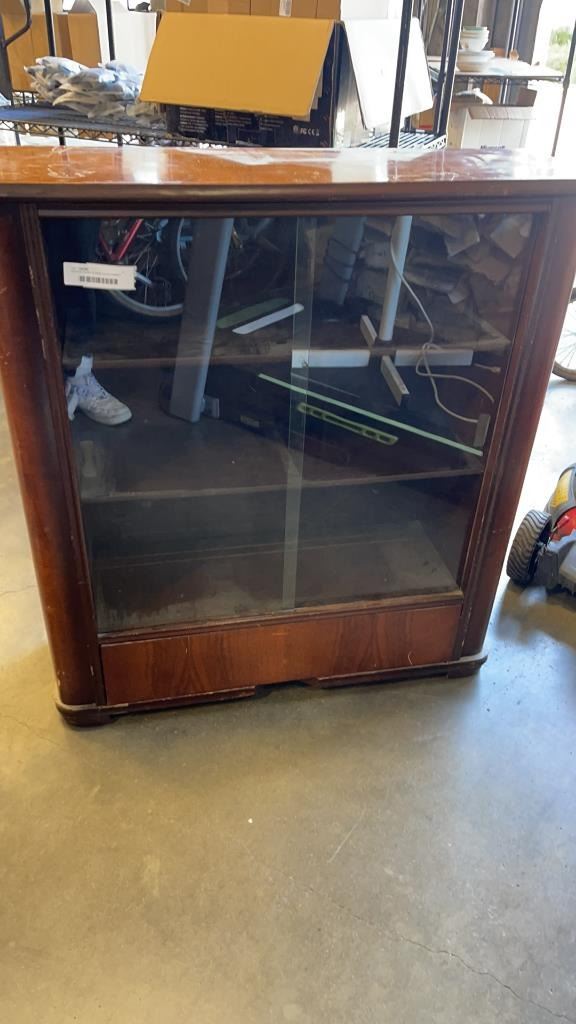 VINTAGE GLASS SLIDING DOOR CABINET