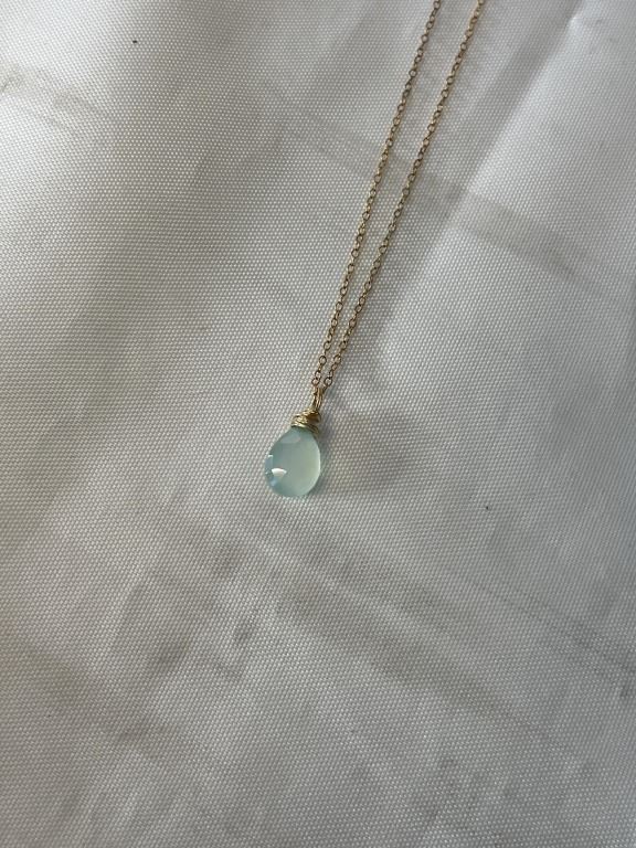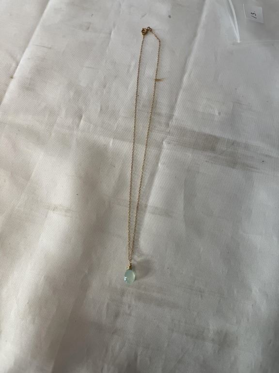 VINTAGE GOLD CHAIN W/ HAND CRAFTED TRANSLUCENT PALE GREEN STONE PENDANT NECKLACE MARKED 1/20 GF 14K
