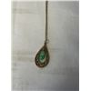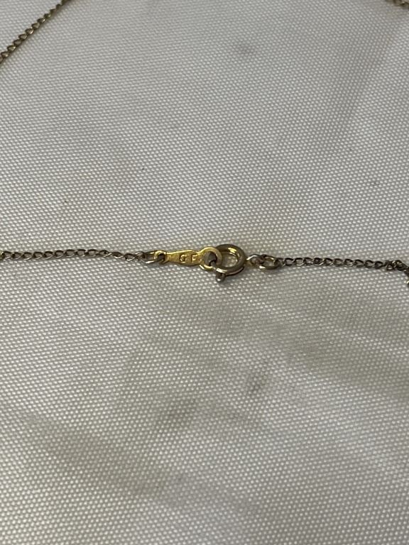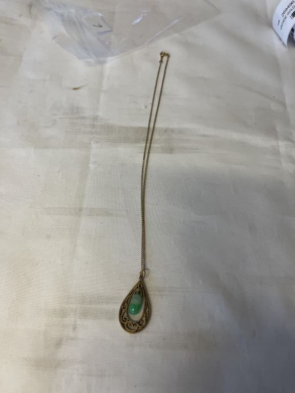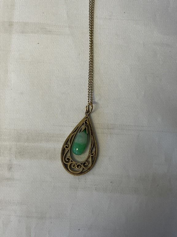 VINTAGE GOLD TONE W/ CHINESE JADE STONE PENDANT W/ CHAIN NECKLACE MARKED GF