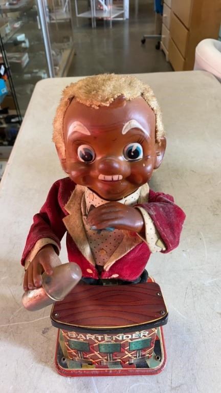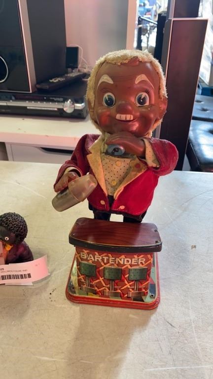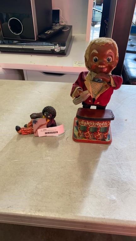 VINTAGE GOLLIWOG FIGURE AND MECHANICAL BARTENDER