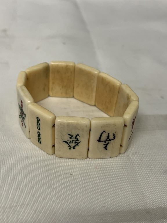 VINTAGE HAND CRAFTED BONE LINKS BRACELET CHINESE DESIGN
