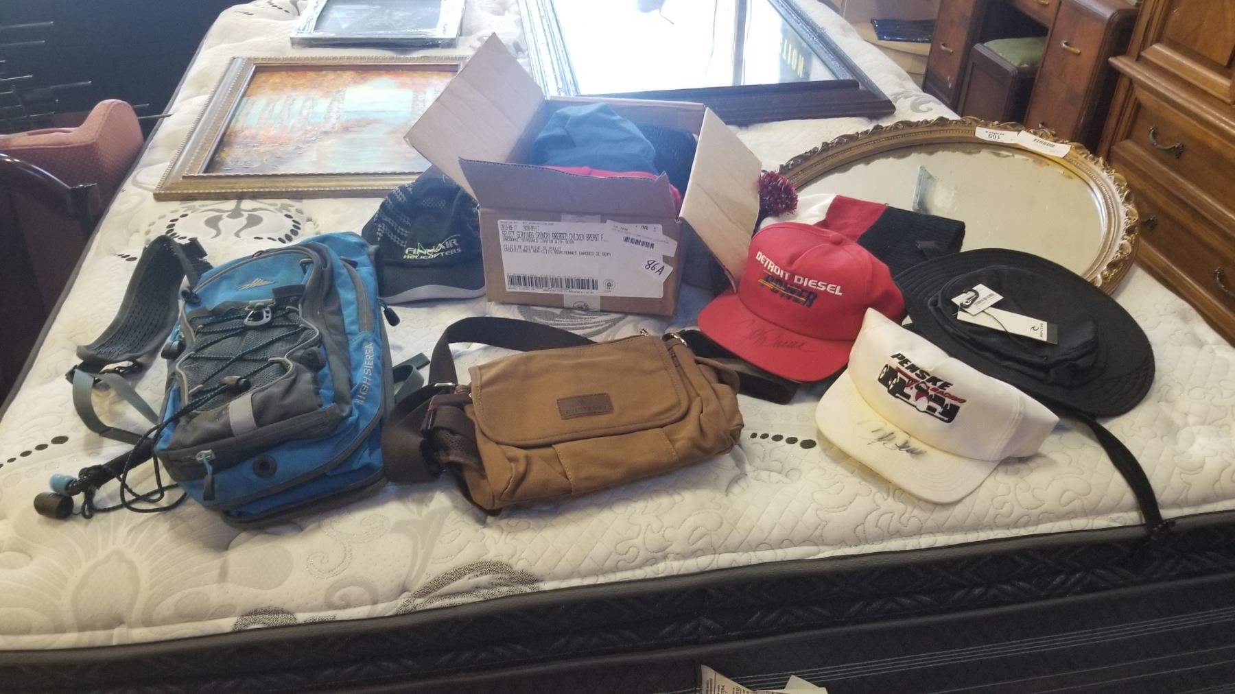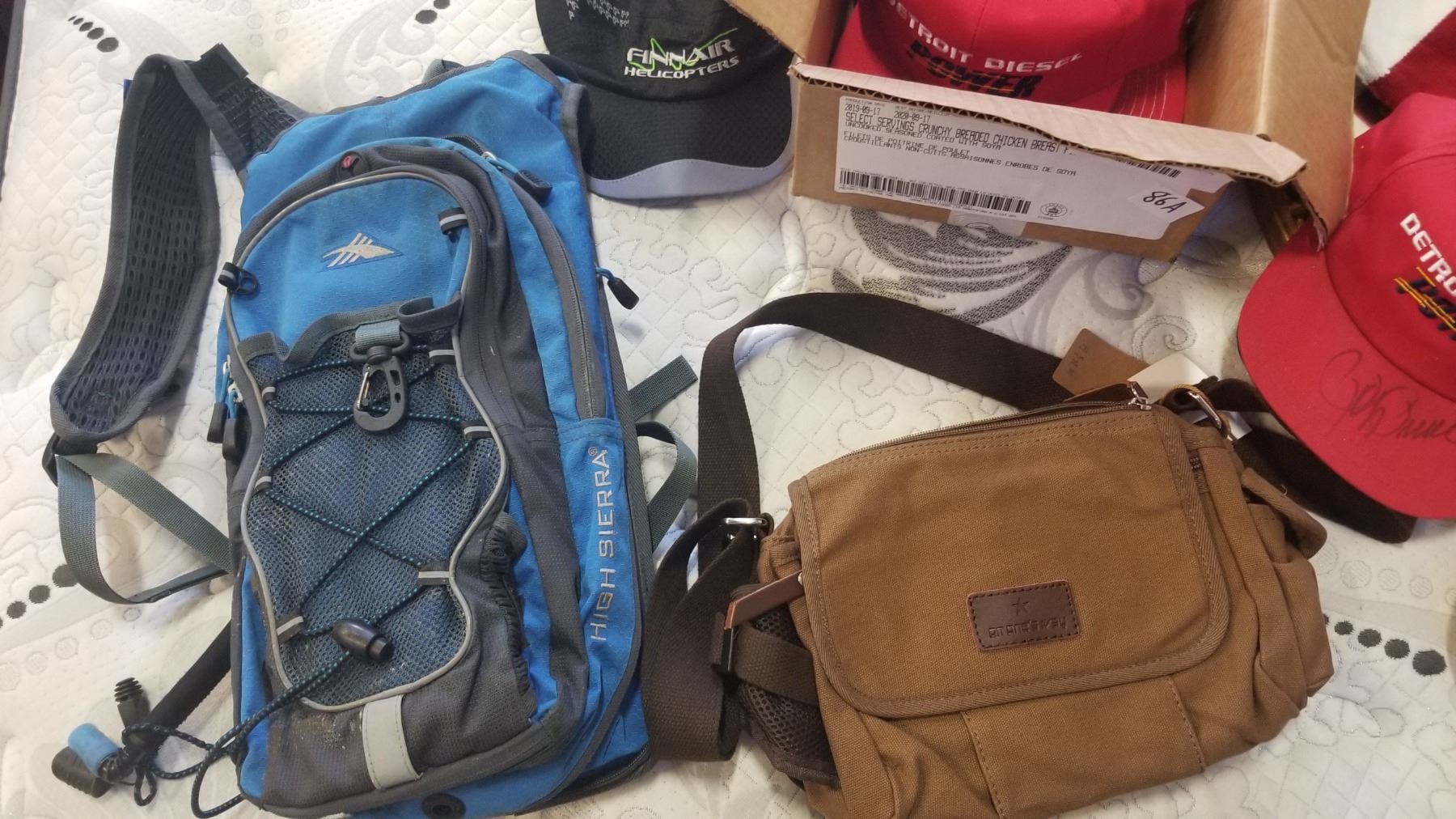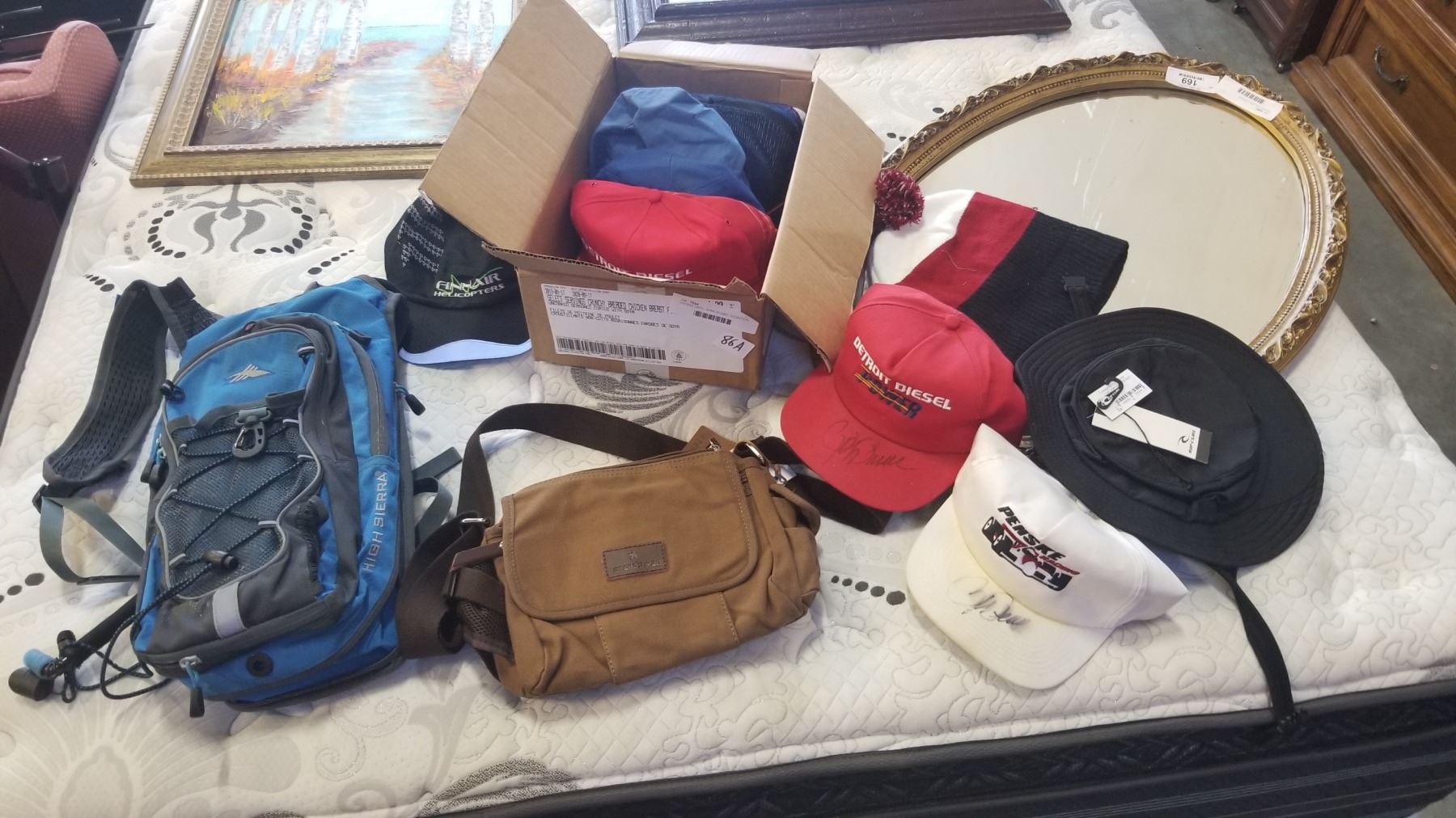 VINTAGE HATS - SOME SIGNED, HYDRATION PACK AND NEW BAG