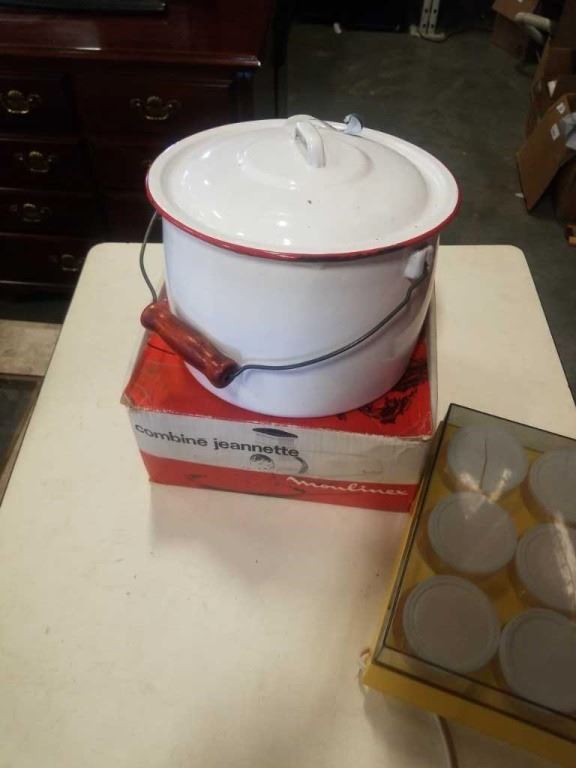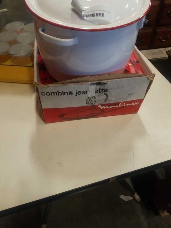 VINTAGE JEANNETTE FOOD PREP MACHINE WITH YOGURT MAKER AND ENAMEL POT
