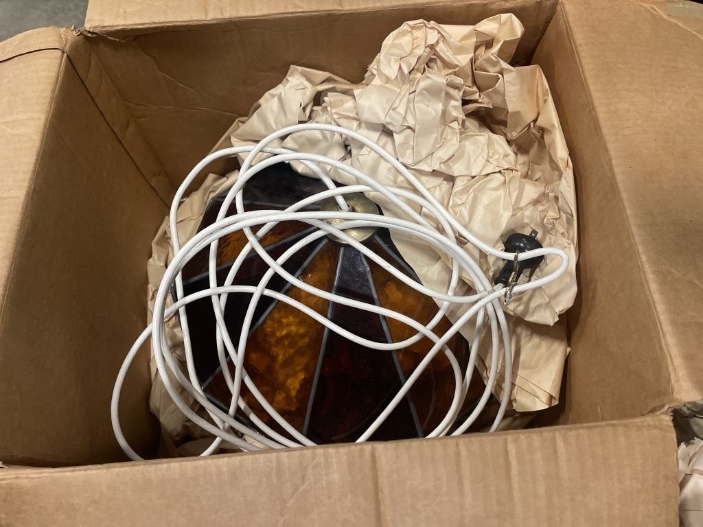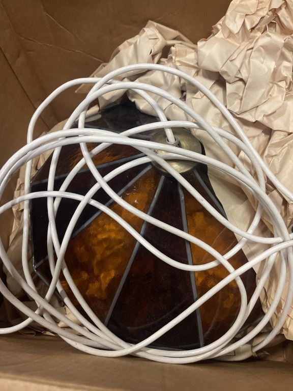 VINTAGE LEADED GLASS PENDANT LIGHT FIXTURE