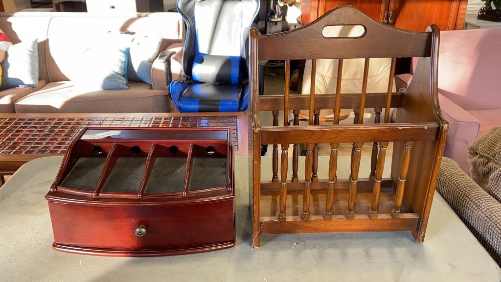 VINTAGE MAGAINZE RACK AND JEWELLERY HOLDER