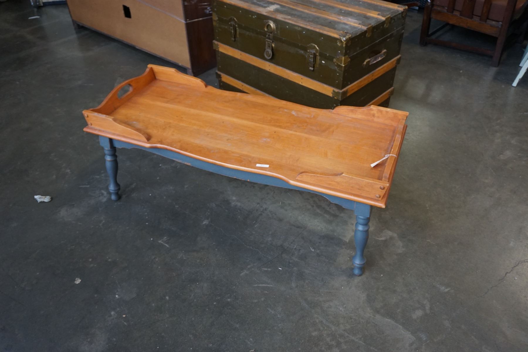 VINTAGE MAPLE REPAINTED COFFEE TABLE W/ GALLERY