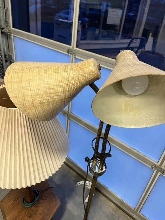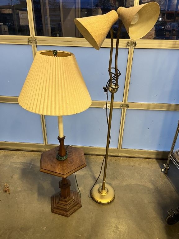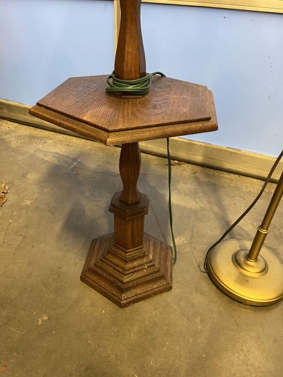VINTAGE MCM BRASS FLOOR LAMP WITH LAMP TABLE