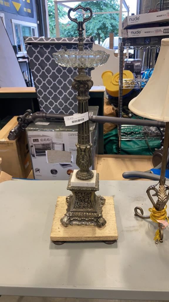 VINTAGE METAL ASH TRAY STAND AND TABLE LAMP