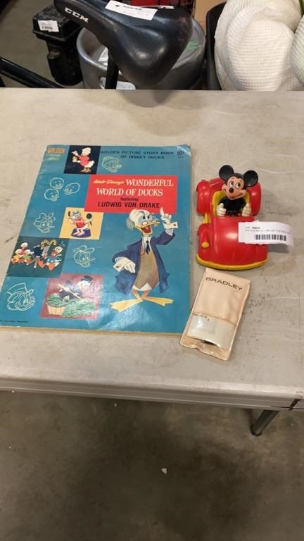 VINTAGE MICKEY MOUSE PORTABLE RADIO CAR AND WATCH WITH DISNEY DUCKS STORY BOOK