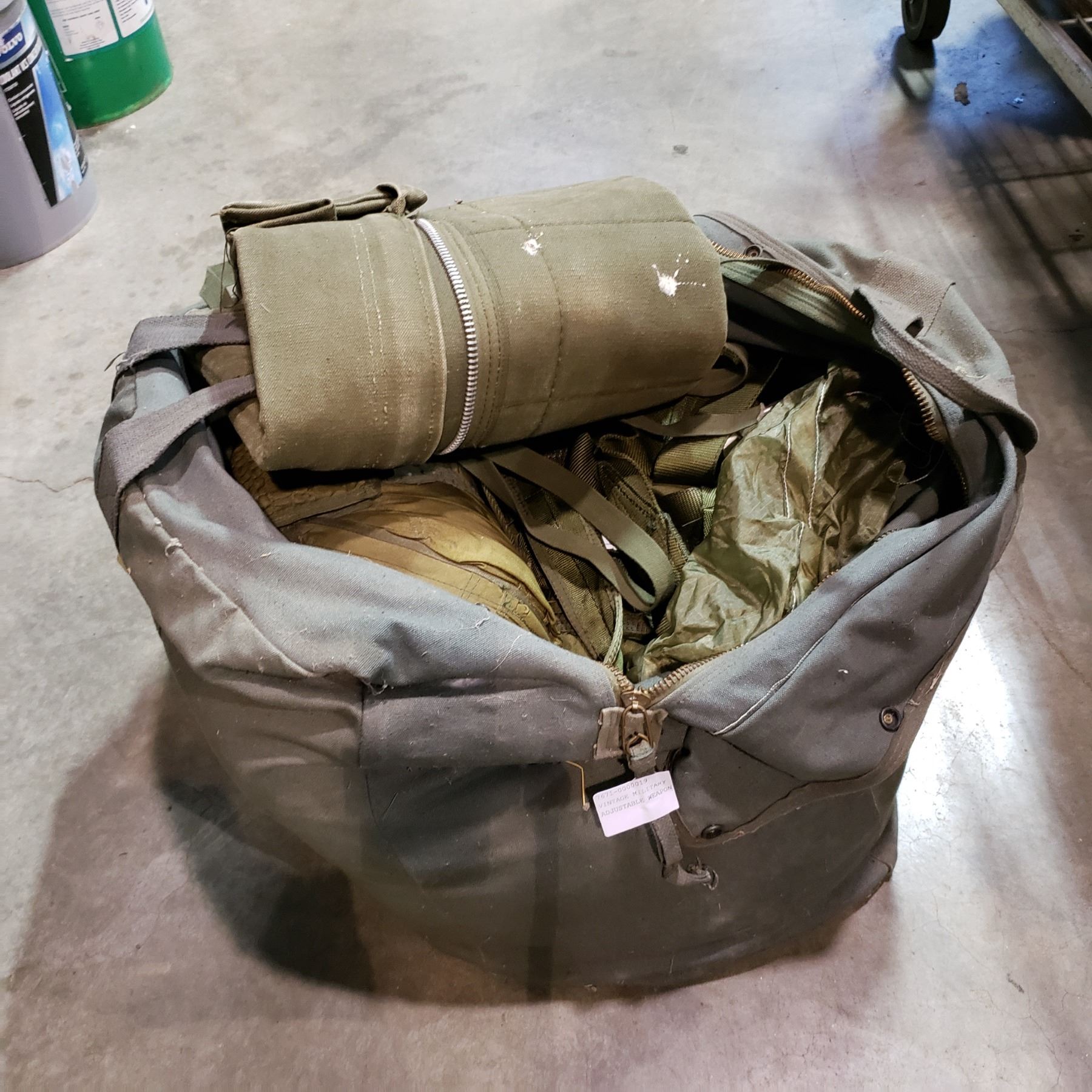VINTAGE MILITARY PARACHUTE W/ ADJUSTABLE WEAPON CASE