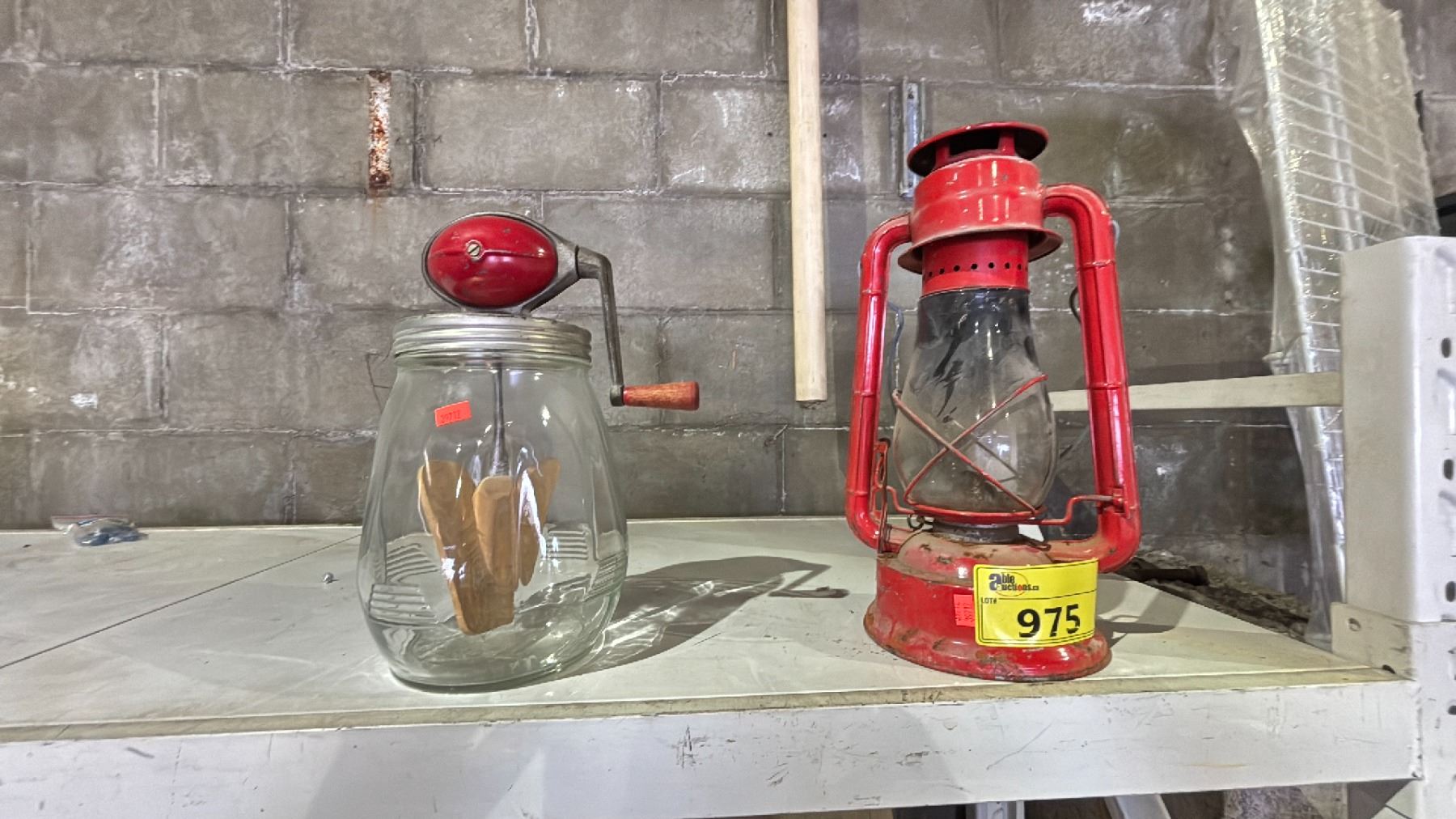 VINTAGE MIXING JAR & VINTAGE OIL LANTERN