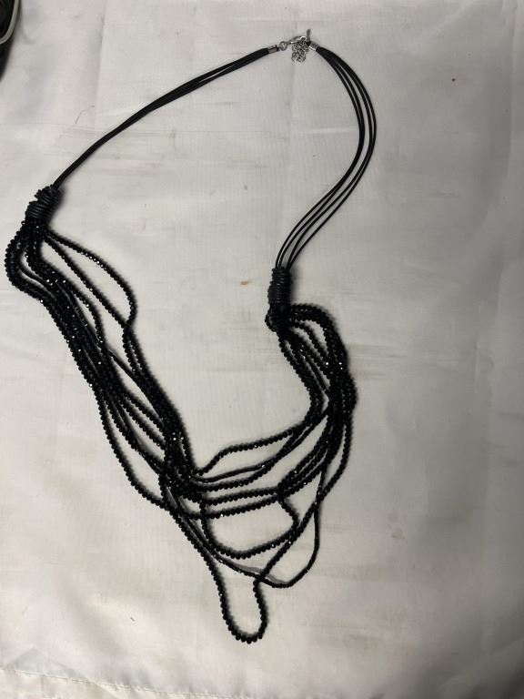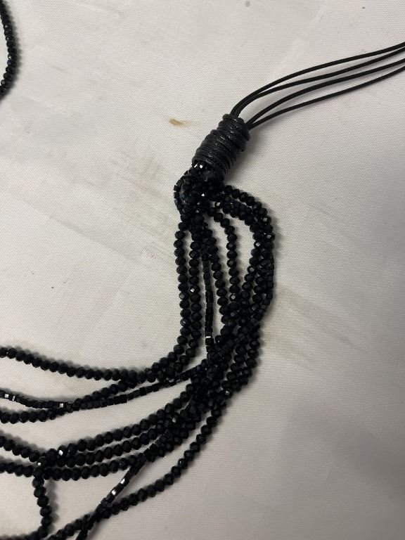 VINTAGE MULTI-STRAND BLACK CRYSTAL BEADS NECKLACE