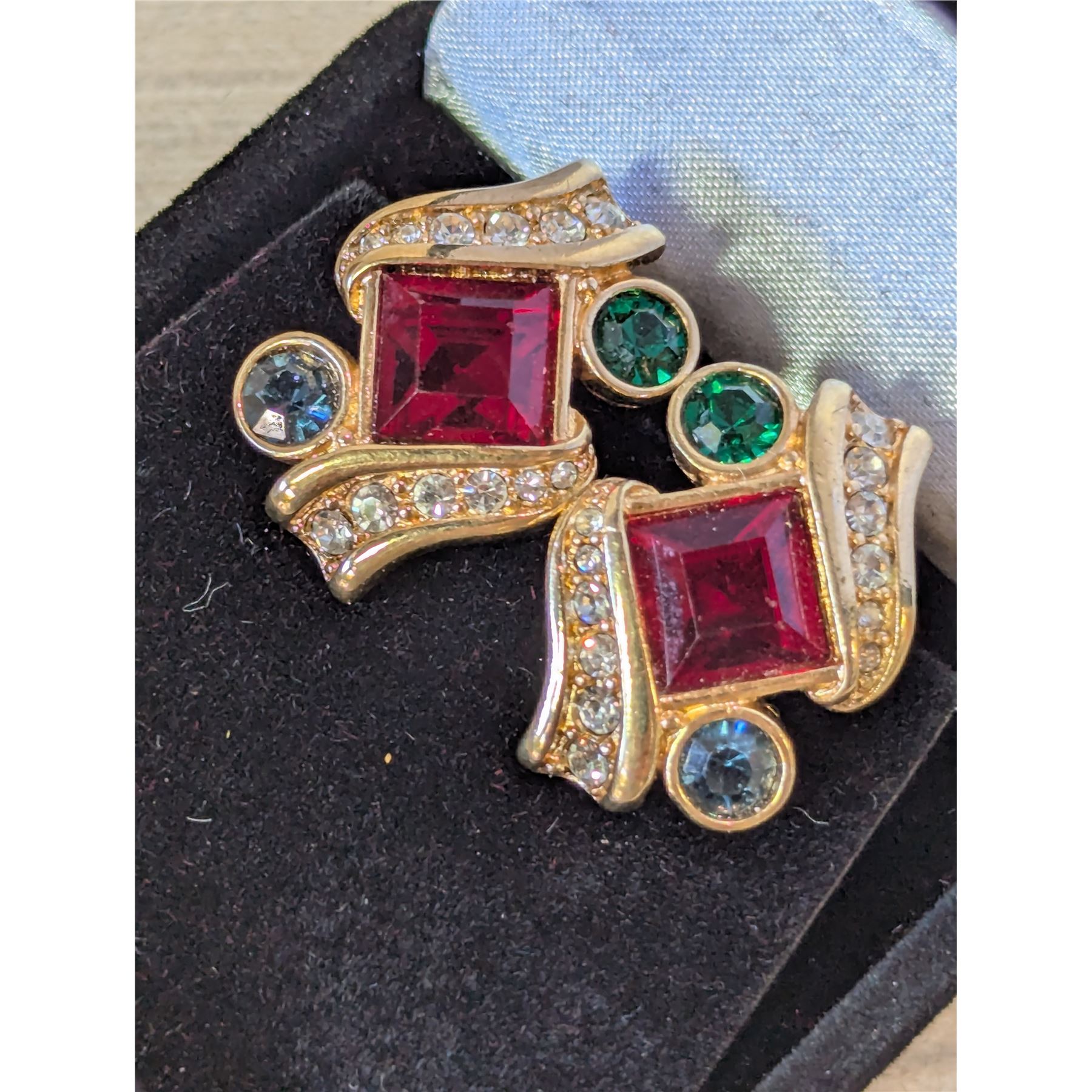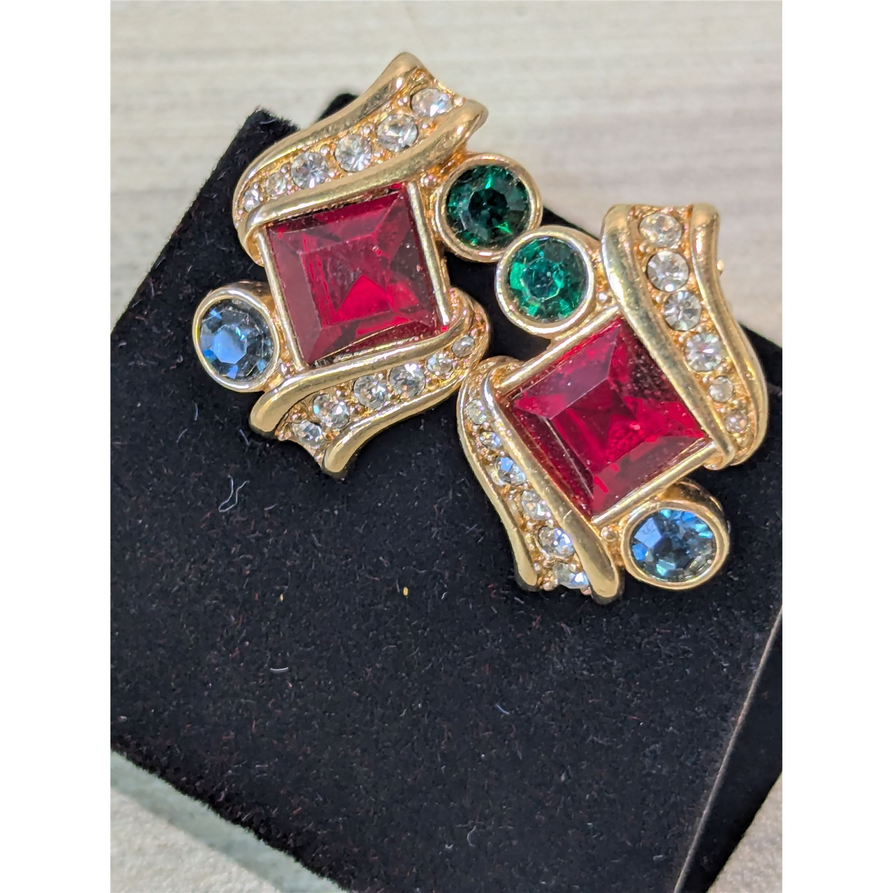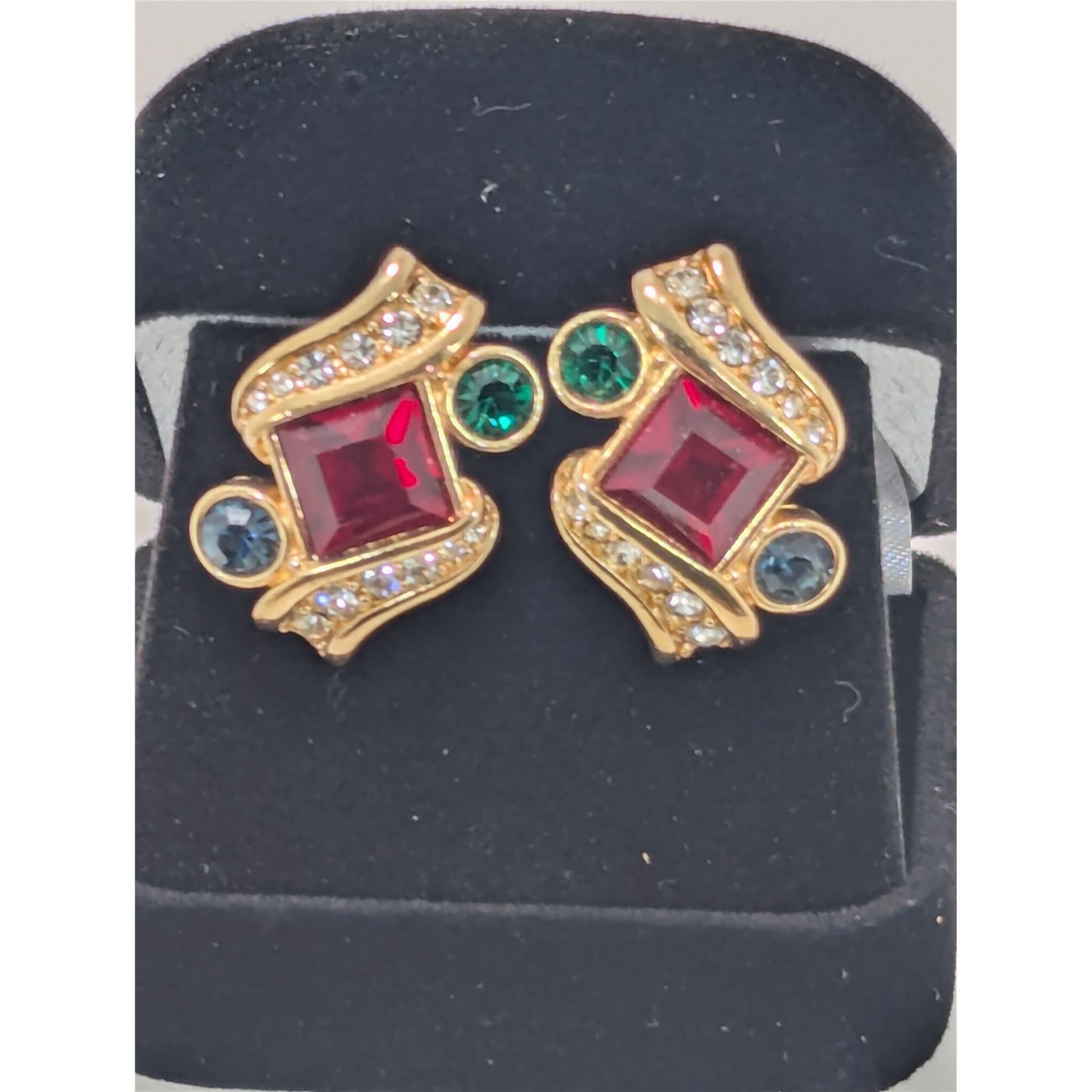 VINTAGE MULTICOLOUR SWAROVSKI CRYSTAL Clip-on Earrings