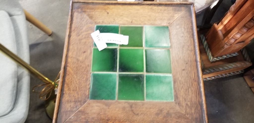 VINTAGE OAK AND TILE TOP TABLE, ORIGINAL FINSH