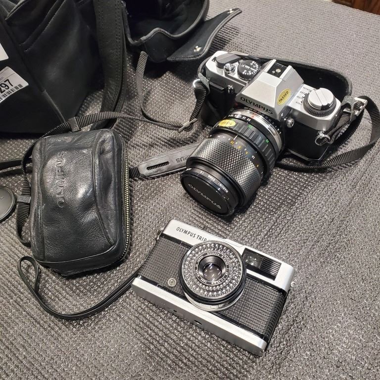 VINTAGE OLYMPUS OM20 CAMERA WITH BAG AND ACCESSORIES