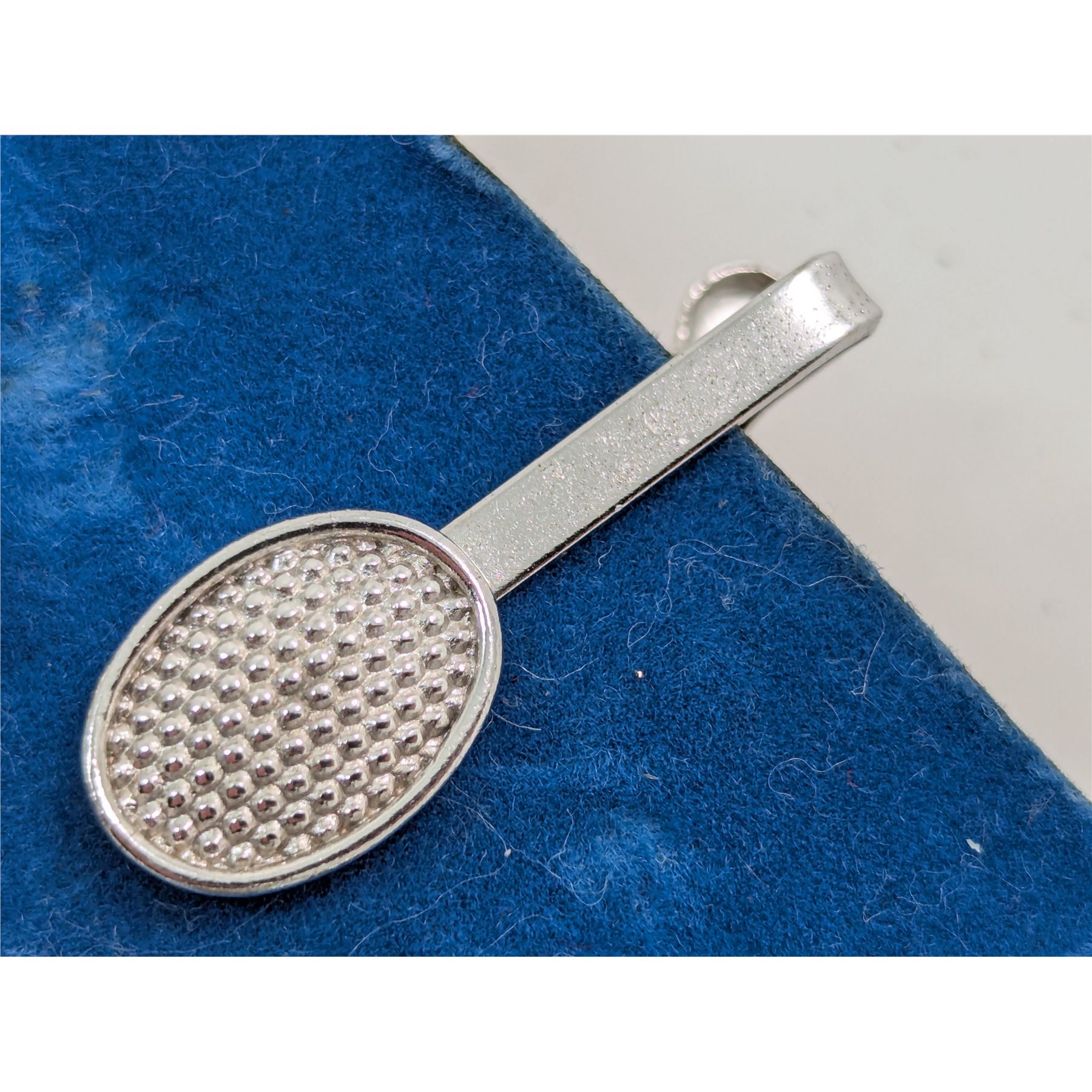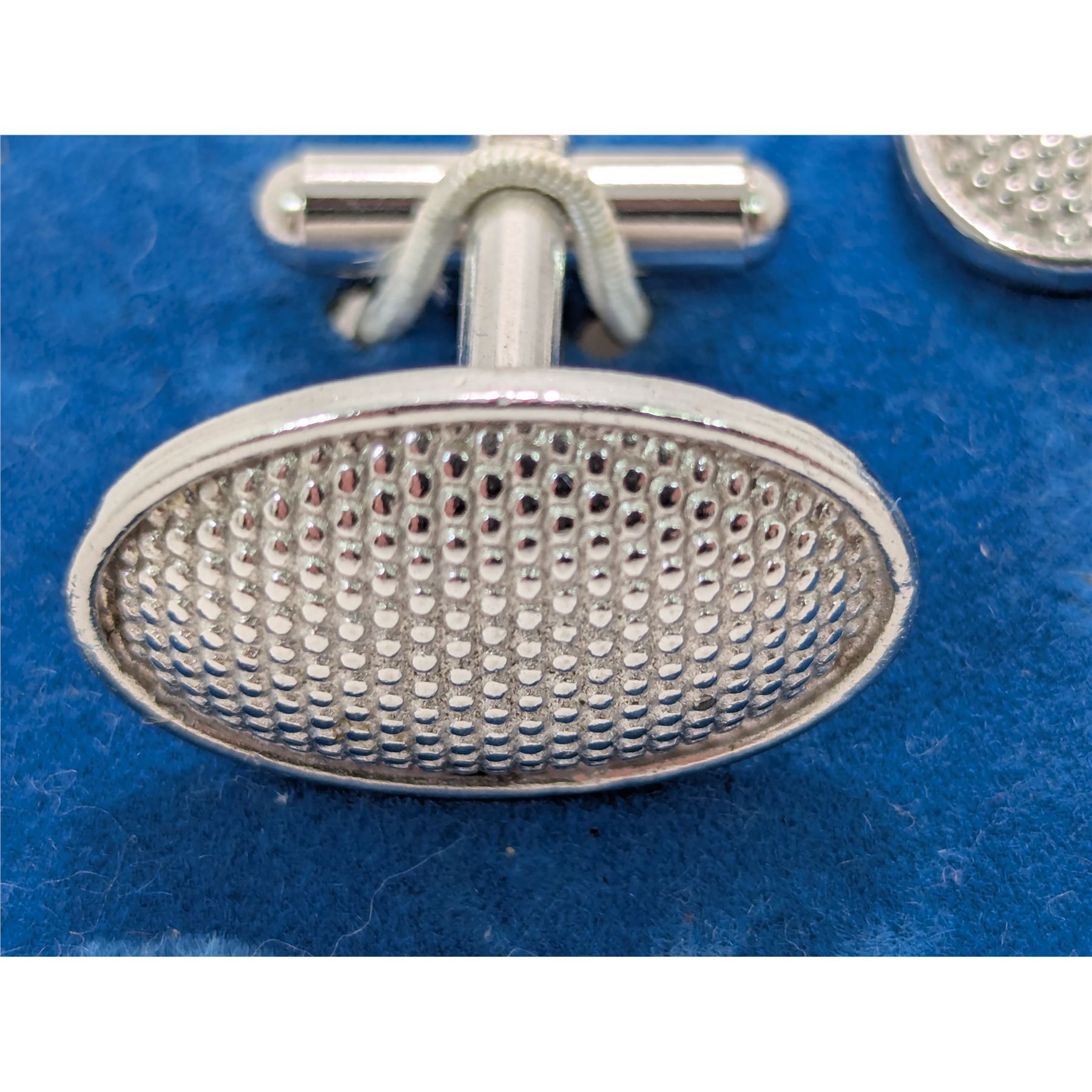 VINTAGE pair of oval sterling silver cufflinks & Tie clip with an engine-turned pattern face.