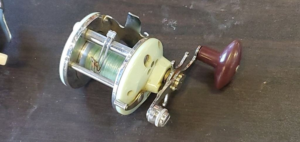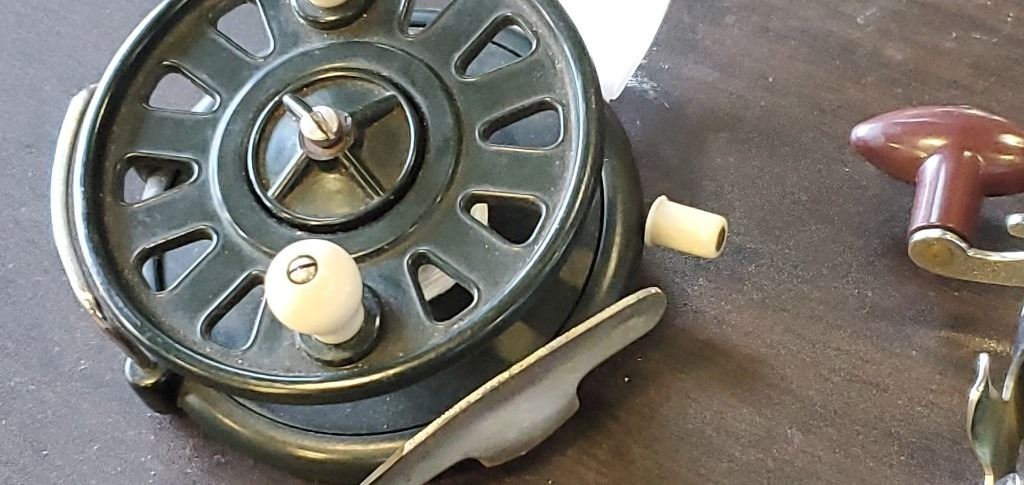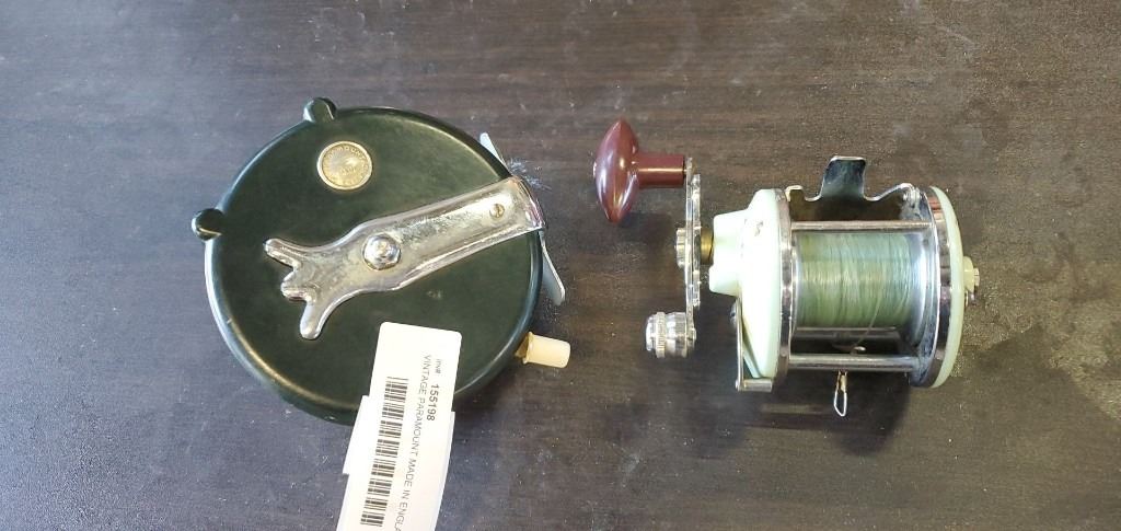 VINTAGE PARAMOUNT MADE IN ENGLAD FISHIN REEL AND VINTAGE LEVEL WIND REEL, BOTH IN GOOD CONDITION