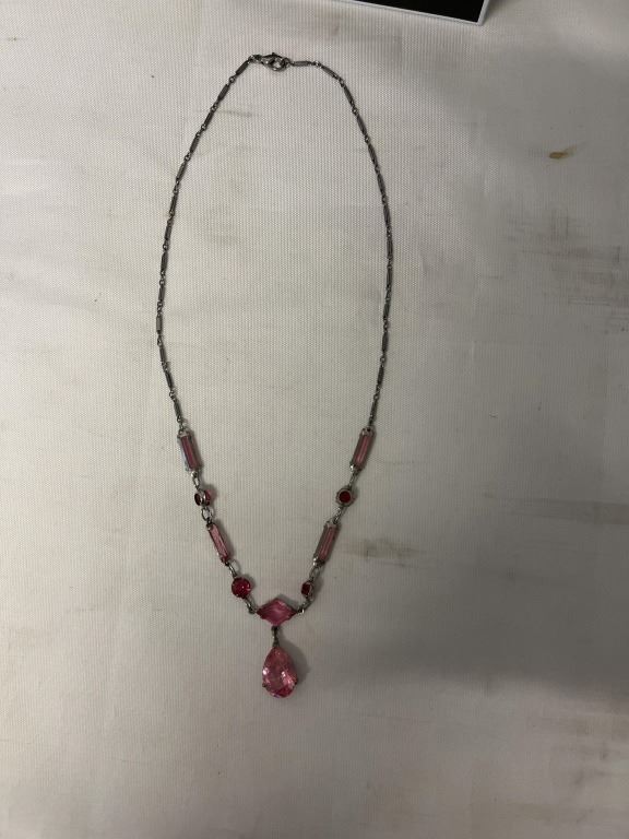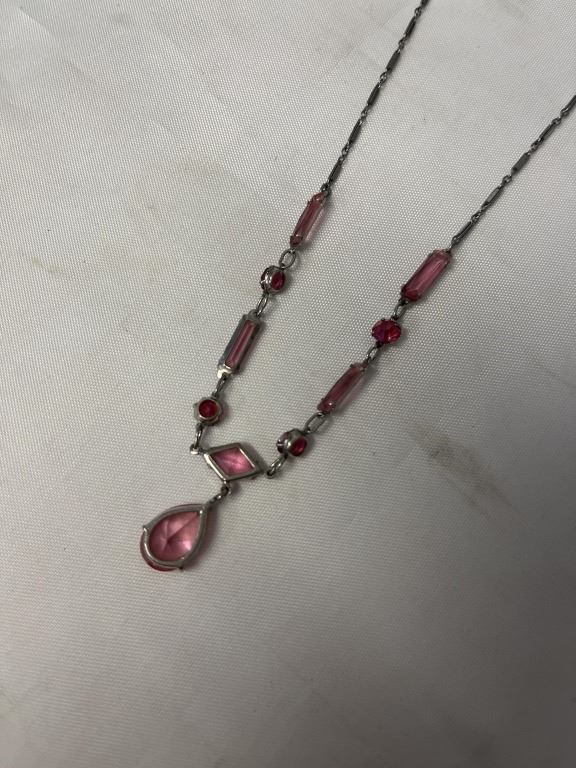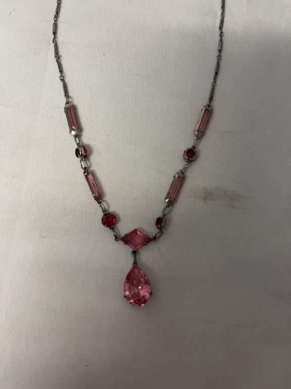VINTAGE PINK CRYSTAL LAVALIER CHOKER NECKLACE