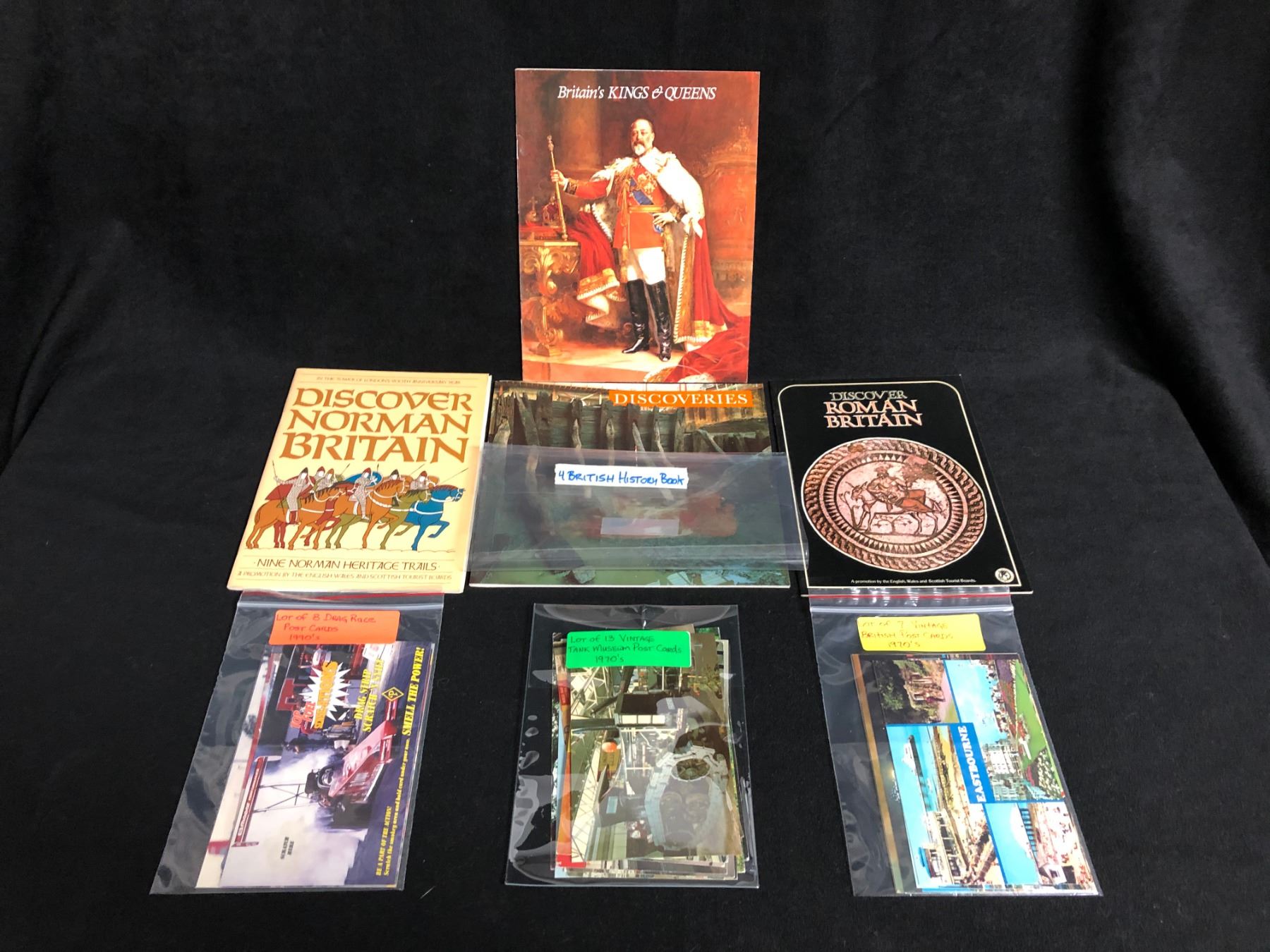 VINTAGE POSTCARDS & HISTORY BOOKS LOT